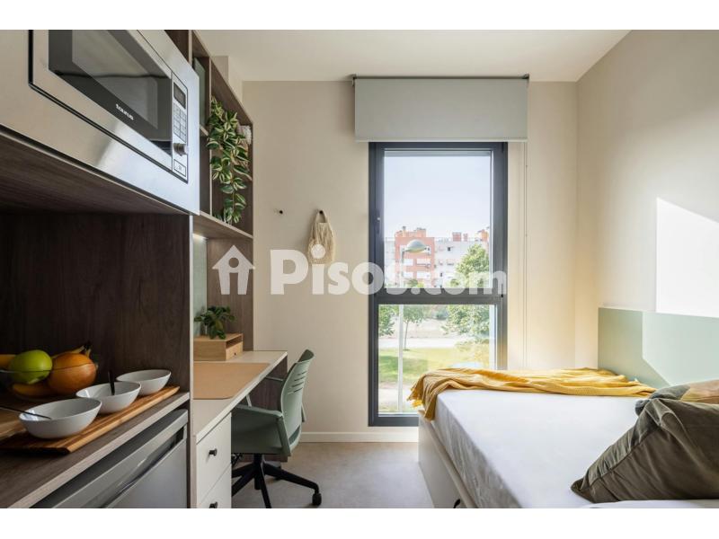 Individual room with its own bathroom and kitchen. From 13m2. Fully furnished and equipped kitchen. Fully furnished and equipped with refrigerator and microwave, pull down bed with storage space, study area, internet and air conditioning. All inclusive: internet, water, heating, air conditioning and unlimited access to common areas. Choose half board, full board. You can find supermarket, shops, pharmacy, etc. close to the residence. It is near the metro station Las Margaritas (13 min walking), less than 7 minutes walking from the residence and the Carlos III university. You can go to the city center by train in 20 minutes. The new residence is just four stops from Sol. Our new university residence is just a few steps away from the city of Madrid. We are located in Alcalde Ángel Arroyo street in Getafe, a wonderful area of Madrid, as it is outside the hustle and bustle of the big city, but very close to it to enjoy it to the fullest. Our location is designed to suit the needs of the students who live there, which is why we chose to be only a 6-minute walk from Carlos III University. Of course, Madrid is not only famous for its size, its atmosphere and its traditions; it is also famous for having a wide range of universities and educational centres where you can carry out all kinds of studies. That''''s why we chose to be only 6 minute walk from the Getafe campus of Carlos III University and 8 minutes by car or 20 minutes by public transport to the Leganés campus. In addition to being very close to the Carlos III, from Amro''''s university residence in Getafe you can reach the Fuenlabrada campus of the Juan Carlos University by train in 25 minutes, the UNED in 12 minutes, and the ANEFF in just 7 minutes by car. The centre of Madrid is easily accessible by train, as the Las Margaritas stop is only 10 minutes away from the residence. Four simple steps and the Puerta del Sol, the epicentre of the capital, appears in front of the students. To facilitate all the residents'''' movements, the residence for students in Getafe also has a car park for cars, motorbikes, scooters and bicycles. Thus, each resident will be able to move around in the way that suits them best, we adapt to everyone! Please be aware that HousingAnywhere is an online booking platform. Therefore exchanging contact details and offering viewings is not possible. If you would like to reserve this accommodation, send me a booking request or a message and please mention your age and occupation. I look forward to meeting you!