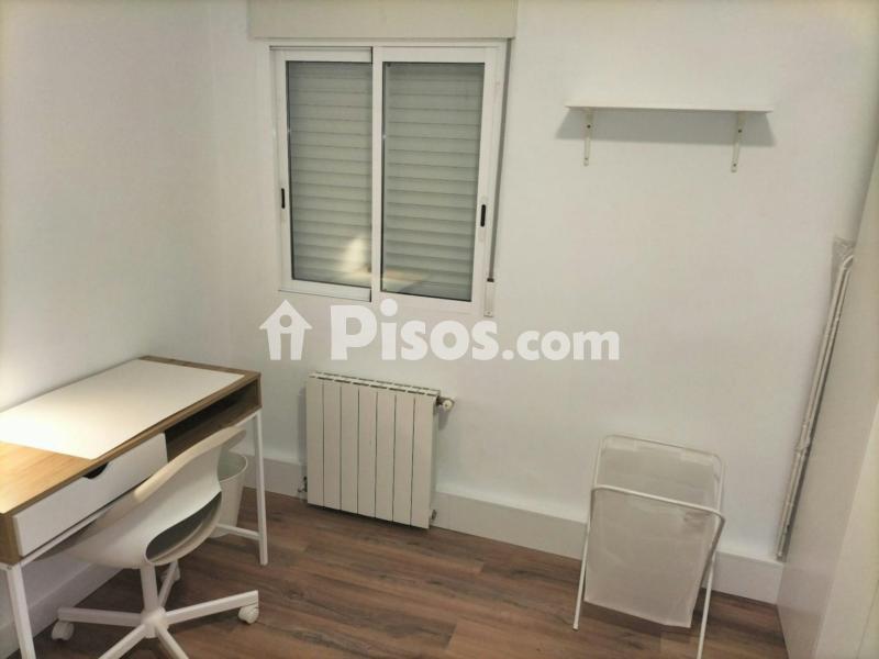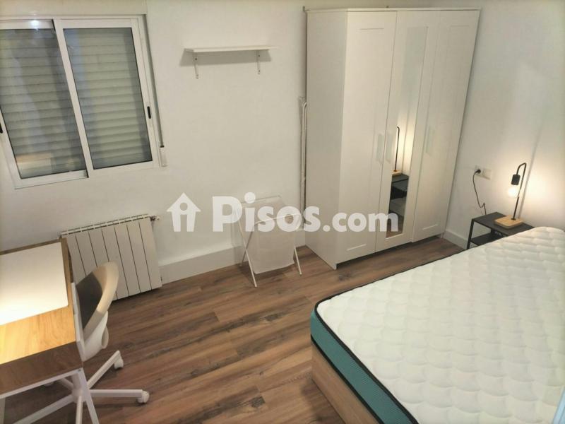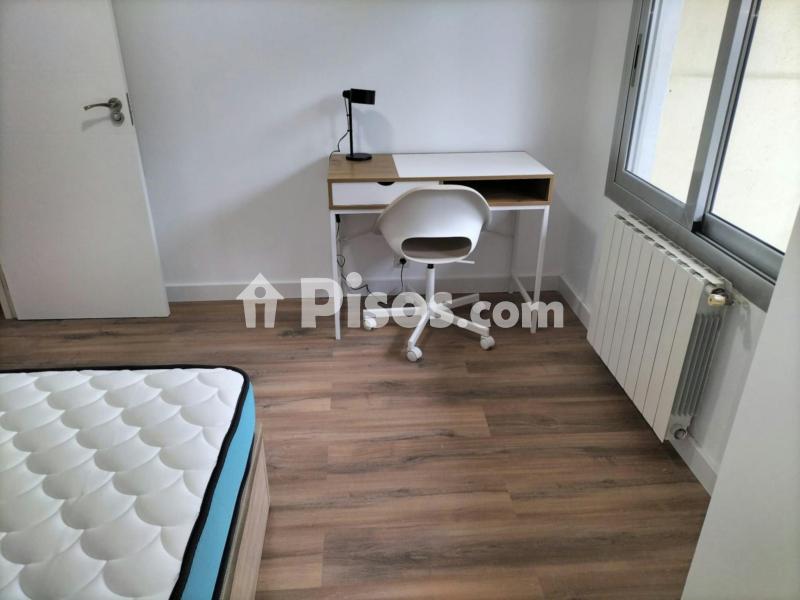 Habitación con cama de 1,35 con arcón de almacenaje, armario de tres puertas, ventilador de techo programable, radiador, cerradura con llave y zona de estudio.