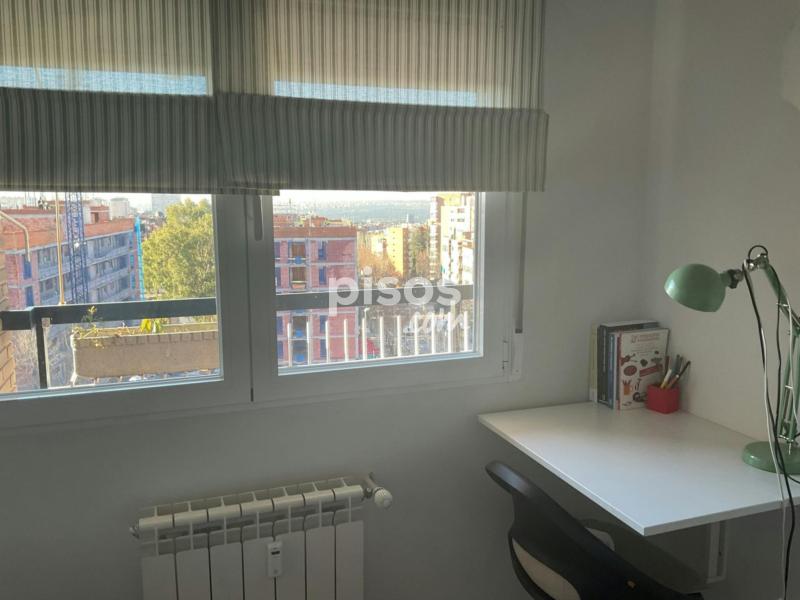 Quiet, peaceful, and sunny exterior room with views of Madrid city center. Includes a full bathroom, WiFi, and utilities. Cleaning service provided, as well as a change of bed linens and towels, and one weekly laundry wash. The room features a very comfortable bed, a desk, lighting, a wardrobe, and a dresser. The building has an elevator, a penthouse, a concierge service, and a metro station just a 2-minute walk away. There are commercial services, a pharmacy, and a large park (Dehesa de la Villa) in the area. I have two rooms available, each for one student, preferably female. Please check availability.