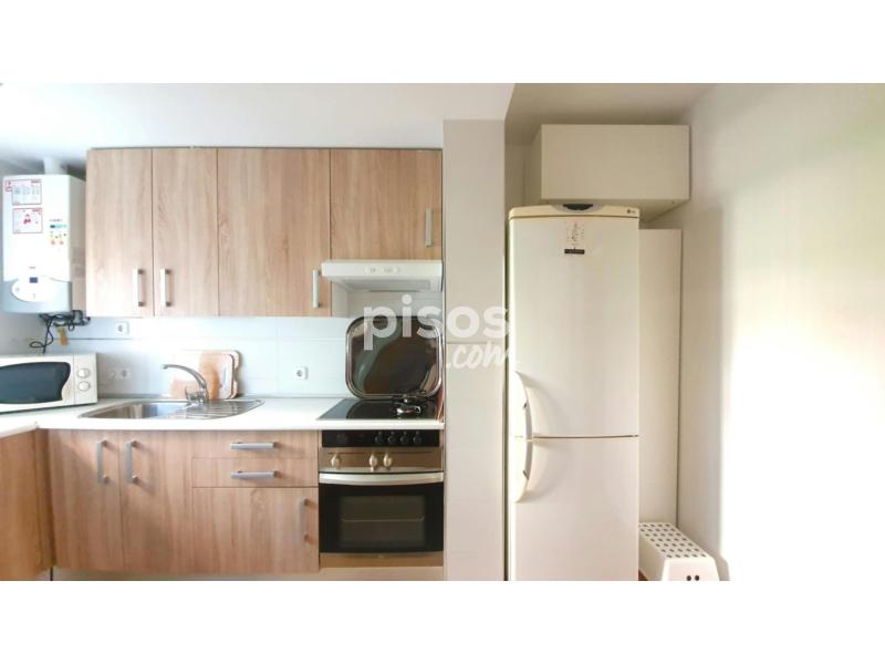 Cocina equipada con horno, vitrocerámica, nevera, lavadora y menaje