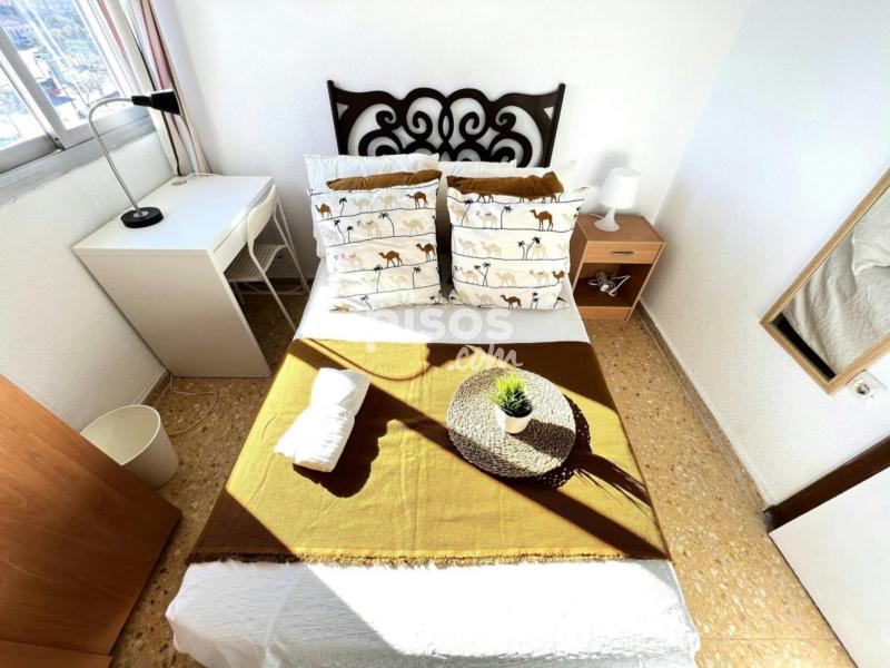 Cozy and bright apartment located in one of the best neighborhoods for students that is well connected by public transport. The apartment is fully equiped and everything have been prepared fot students-young workers. It has 5 bright double bedrooms , all of them withventilators, and also 2 complete bathrooms. It is ideal to share with students and young people coming to work in Valencia. The common areas are fully integrated in a single environment. You can enjoy and relax in the lounge which is fully furnished with a flat screen TV, also can use it as a study area and connect to the WIFI. The area is very well served by public transport by having two metro stations that connect you with the various lines of the Valencia metro network in less than 3 minutes walking, and conect you with the main Universities, downtown, and beach: EXPENSES: The rental price includes internet and a weekly cleaning of the common areas. The costs of utilities are as follows: -Water: 10€/month -Gas: 15€/month -Electricity: 25€/month, if any month the consumption is more than this, the difference will be paid separately. In this case, the expenses are shared equal parts between the tenants. BED LINEN: For a hygienic reason, we do not provide any bed linen, neither pillow, duvetor duvet cover. - One of the advantages of living in Valencia is that you have the option of cycling by Valenbisi. For a minimum amount per year (30€) you have the option to cycling around Valencia with an ecological and healthy challenge available 24 hours 365 days in a year .It''''s easy to use: log in with your Valenbisi target in one of the more than 275 parking bikes, take one and move around the city freely. When you arrive to the destiny, you will find one parking near, and the only thing you have to do is park the bike and enjoy the city!