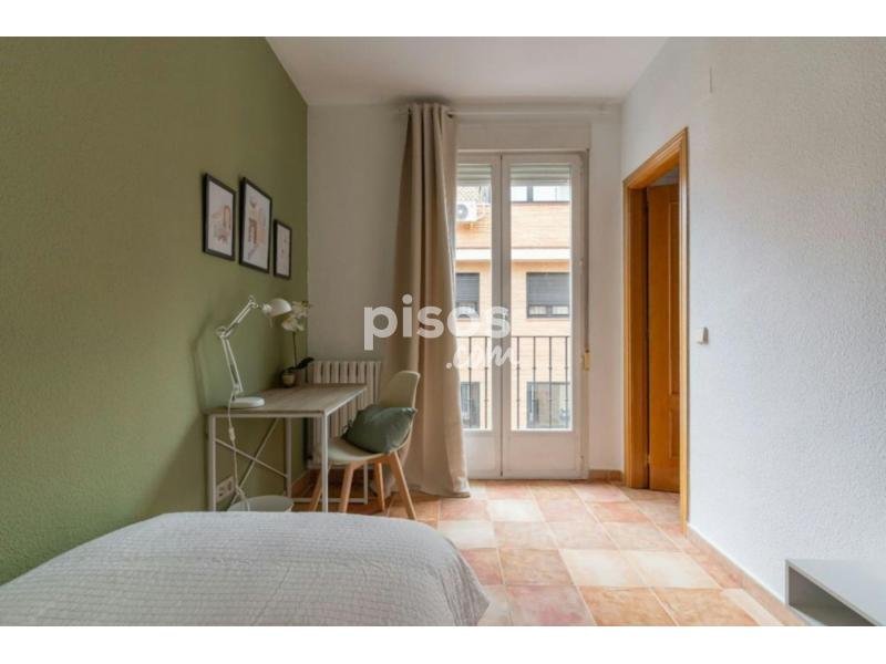 This building has 29 bedrooms, 13 bathrooms and one toilet on 4 floors. Tenants occupying floors 1 and 2 share the common areas located on floor 1, while those occupying floors 3 and 4 share the common areas on floor 3. The apartment has an elevator, stairs, storage room on floor 1, fully equipped kitchen area with appliances (ceramic hob, refrigerator, oven, microwave), kitchenware and dining area. Perfect for international students and young professionals, located only 13 minutes away from the university area and office area, known for its cosmopolitan atmosphere and its variety of services and activities, a unique opportunity to enjoy life in Madrid! This building is located in the Bellas Vistas neighborhood, however, it is on the border of three other important neighborhoods such as Cuatro Caminos, Rios Rosas and Vallehermoso. Here you can find everything you would expect from a great neighborhood near the capital. You probably won''''t find a better and safer neighborhood than Bellas Vistas in Madrid. It is located in the upper part of the city, has spectacular views and is very quiet. Here you can find everything you need to live like a real Madrileño: stores, bars, restaurants and much more. The Bellas Vistas neighborhood is located in the residential and economic area of Madrid. This means that you have plenty of stores, restaurants and bars nearby. The building enjoys excellent accessibility to public transport, being located in the vicinity of several metro stations and bus stops on Bravo Murillo street. Just a *4 minute* walk away is the *Cuatro Caminos* metro station with access to lines 1, 2 and 6 of the metro network and also *5 minutes* away is the *Alvarado* metro station that connects to line 1. In addition, a short distance away on Calle Bravo Murillo is the bus stop with multiple lines, such as *line 3* that connects to the center of Madrid. While in Paseo la Castellana is the *line 45* that connects directly to Plaza Cibeles. An additional advantage is the ease of use of the *Bicimad* system, which provides a healthy and sustainable option for getting around Madrid by bicycle. With an affordable monthly subscription, approximately 10€, it allows access to a network of more than 611 bike stations distributed throughout the city. Just *5 minutes* away on *Calle Doctor Santero* you have a station where you can take a bike to explore the city and then, when you arrive at your destination, park it at any nearby station, ensuring an agile and practical mobility at all times. * *Mercado de Maravillas:* it is a Madrid food market located on Bravo Murillo street, well known for having national and international food stalls, as well as several stores and bars. * *Parque del Tercer Depósito:* sports complex with several garden and children''''s areas. The park covers an area of 116,000 square meters, with large green areas and other areas for physical activity and sports. * *Santiago Bernabeu Stadium:* is a sports complex owned by Real Madrid Club de Fútbol, located on Paseo de la Castellana, in the Chamartín district of Madrid, Spain. - Don''''t smoke - Pets are not allowed - Parties are forbidden - Take out the trash daily - Short-term visits are allowed - (hidden) informs that in this flat a device has been installed in order to allow the monitoring of the noise level (decibels) 24 hours a day. The system emits an alert whenever the sound level exceeds the maximum allowed by the Community of Madrid, mainly between 11pm and 6am. Bright room with semi-private bathroom in Alvarado Beautiful room with semi-private bathroom in Cuatro Caminos in a shared apartment ideal for international students and young professionals. The room is equipped with everything you need to enjoy your stay, it has a single bed ( *90 cm* ) with storage under the bed, a built-in closet, ceiling fan, a desk with chair and lamp and a bedside table. The size of the room is *9.04 m2* , it has a balcony overlooking the main street, central heating and also has its own lock on the door for security. This room is located on the third floor of the building and shares a bathroom with room 23. The kitchen and dining area is located on floor 3 and is shared with the tenants of floor 3 and floor 4 only. For more details we invite you to view the floor plan and see the location of the room on floor 3. **Bed linen is not included, only the mattress cover is provided.*