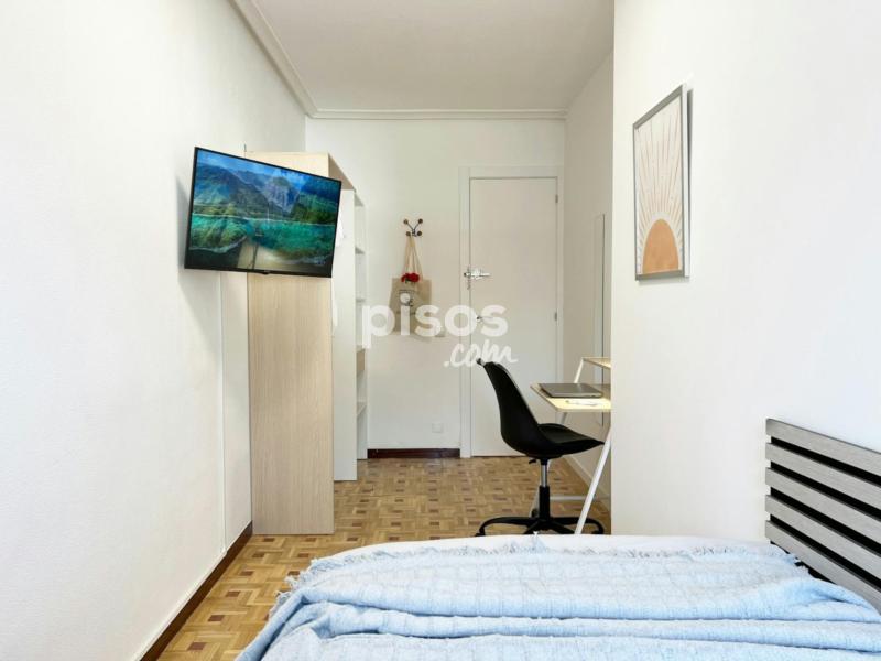 Características de la habitación: Habitación individual con medida de 9.36mtrs2. Cama individual de 90 cm. TV de 32". Armario. Espacio de trabajo, con escritorio y silla. Ventana Exterior. Cerradura en la habitación. Piso de seis habitaciones y dos baños, ubicado en la cuarta planta (con ascensor). La cocina está equipada con todos los electrodomésticos, utensilios y menaje necesarios. Los baños cuentan con espacio de almacenaje para tus enseres personales. Condiciones de Alquiler: DNI, NIE o Pasaporte. Mes corriente. Depósito de seguridad reembolsable (ciertas condiciones aplican). Se solicita un pago único al momento de la entrada, para gastos de gestión y mantenimiento (este importe puede variar según la temporada). Las habitaciones no incluyen: Ropa de cama, mantas o toallas. Horario de Check-in: Horario: 14:30 - 18:30 de lunes a viernes en la oficina del propietario. Los check-ins fuera del horario habitual, durante fines de semana y días festivos, son una excepción y sólo podrán realizarse si han sido autorizados previamente. Además, tendrán un cargo adicional de 30 euros. Por favor, consulta antes de planificar tu llegada en horarios distintos, puesto que no se garantiza la disponibilidad. Normas: No se permiten mascotas y está prohibido fumar. Los límites de edad establecidos para el alquiler son entre los 18 y 39 años. Transporte: - La estación de metro Manuel Becerra está a 7 minutos caminando (Líneas 2 y 6) y a 20 minutos caminando de la estación de metro Ventas (Líneas 2 y 5 del Metro). - Cercanías Renfe C-1, C-2, C-7, C-8, C-8a y C-10 desde Estación Recoletos a 30 minutos caminando. - Parada de autobús 146, “Alcalá - Parque Bomberos”, a 2 minutos caminando.