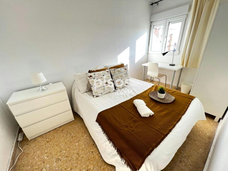 Cozy and bright apartment located in one of the best neighborhoods for students that is well connected by public transport. The apartment is fully equiped and everything have been prepared fot students-young workers. It has 5 bright double bedrooms , all of them withventilators, and also 2 complete bathrooms. It is ideal to share with students and young people coming to work in Valencia. The common areas are fully integrated in a single environment. You can enjoy and relax in the lounge which is fully furnished with a flat screen TV, also can use it as a study area and connect to the WIFI. The area is very well served by public transport by having two metro stations that connect you with the various lines of the Valencia metro network in less than 3 minutes walking, and conect you with the main Universities, downtown, and beach: EXPENSES: The rental price includes internet and a weekly cleaning of the common areas. The costs of utilities are as follows: -Water: 10€/month -Gas: 15€/month -Electricity: 25€/month, if any month the consumption is more than this, the difference will be paid separately. In this case, the expenses are shared equal parts between the tenants. BED LINEN: For a hygienic reason, we do not provide any bed linen, neither pillow, duvetor duvet cover. - One of the advantages of living in Valencia is that you have the option of cycling by Valenbisi. For a minimum amount per year (30€) you have the option to cycling around Valencia with an ecological and healthy challenge available 24 hours 365 days in a year .It''''s easy to use: log in with your Valenbisi target in one of the more than 275 parking bikes, take one and move around the city freely. When you arrive to the destiny, you will find one parking near, and the only thing you have to do is park the bike and enjoy the city!