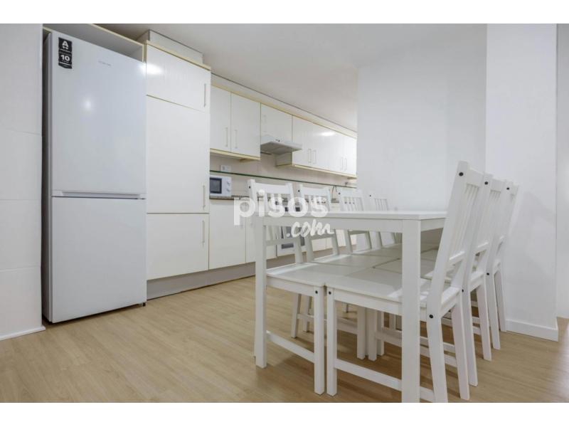 The apartment sizes 130m2 and it has 7 bedrooms and 2 bathrooms. Common areas are really beautiful, with a kitchen equipped with: