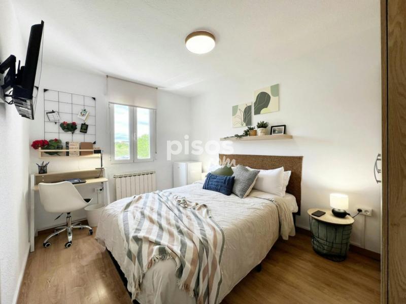 Características de la habitación: Habitación doble con medida de 9.9mtrs2. Acepta pareja. Cama matrimonial de 140 cm. TV 32”. Armario doble. Espacio de trabajo, con escritorio y silla. Refrigerador ejecutivo. Ventana exterior. Cerradura en la habitación. Piso de cinco habitaciones y un baño, ubicado en la tercera planta (sin ascensor). La cocina está equipada con todos los electrodomésticos, utensilios y menaje necesarios. El baño cuenta con espacio de almacenaje para tus enseres personales. Condiciones de Alquiler: DNI, NIE o Pasaporte. Mes corriente. Depósito de seguridad reembolsable (ciertas condiciones aplican). Se solicita un pago único al momento de la entrada, para gastos de gestión y mantenimiento (este importe puede variar según la temporada). Las habitaciones no incluyen: Ropa de cama, mantas o toallas. Check-in autónomo mediante cerradura inteligente. Podrás entrar al piso de forma segura y sin contacto a cualquier hora. Una vez confirmada la reserva, debes ponerte al día con todos los pagos y la documentación requerida, así recibirás las instrucciones necesarias para acceder fácilmente a la vivienda. En los casos en que se requiera hacer el check-in en la oficina del propietario, se debe concertar una cita previa, esta cita será fijada de lunes a viernes, de acuerdo a la disponibilidad. Se requiere coordinación previa. Normas: No se permiten mascotas y está prohibido fumar. Los límites de edad establecidos para el alquiler son entre los 18 y 39 años. Transporte: - Estación Colonia Jardín a 5 minutos caminando (Línea 10 del Metro) y a 15 minutos caminando está la Estación de Metro Campamento (Línea 5). - Líneas ML-2 y ML-3 de Tranvías en Colonia Jardín a 5 minutos caminando. - Parada de autobús 65 “Carretera De Boadilla - Centro Cultural” a 2 minutos caminando.