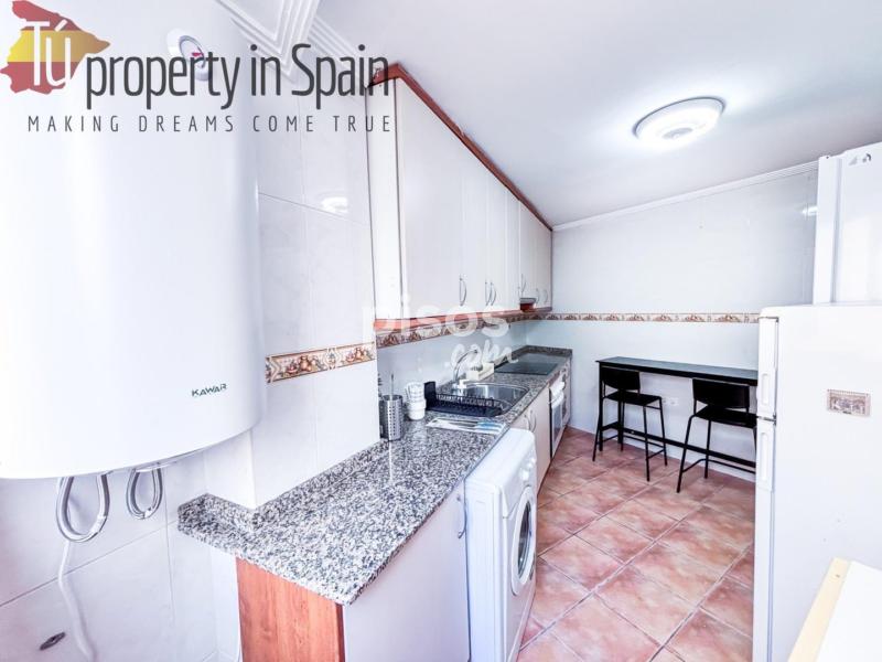 Cocina totalmente equipada con electrodomésticos y barra para comer