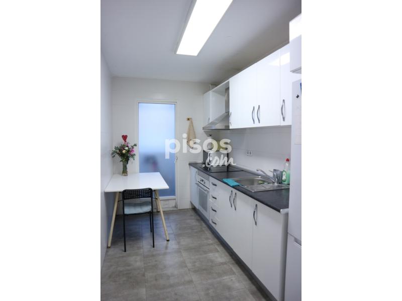 El piso está completamente amueblado, con 2 baños, uno de ellos con ducha, cocina completa, balcón, galería, suelo de parqué, muy amplia y bien iluminada.