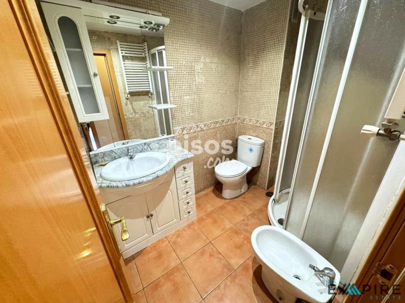 El baño, moderno y espacioso, cuenta con plato de ducha y mampara de cristal, garantizando funcionalidad y elegancia.
