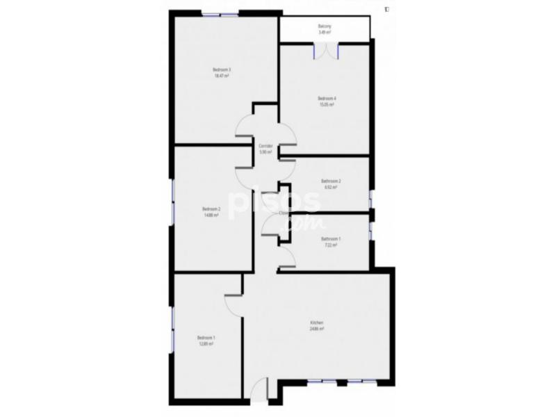4 habitaciones en Apartment con 2 baños.
