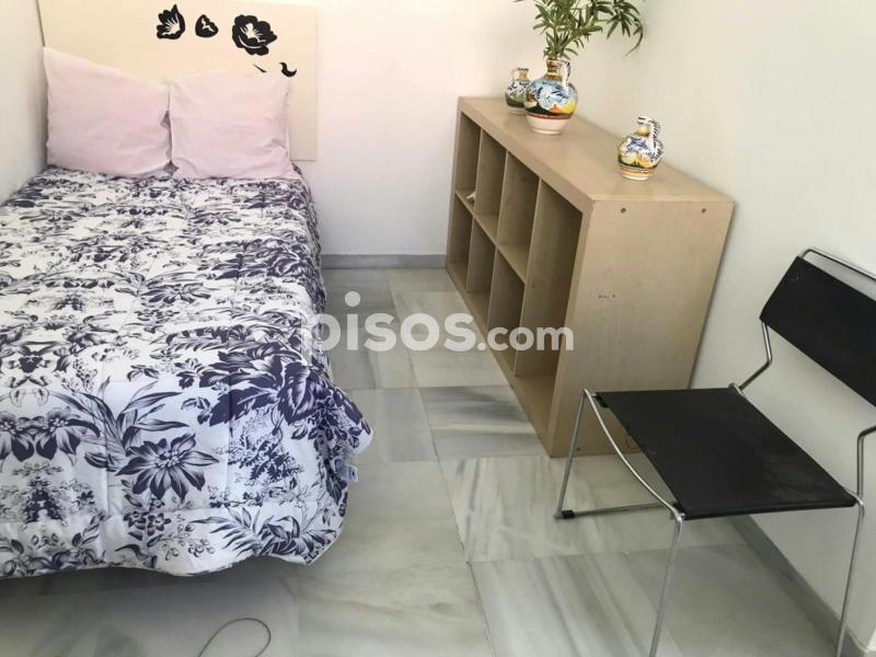 Antigua casa sevillana con mucho encanto y luz. Se compone de tres plantas con amplios pasillos. En la planta baja hay seis habitaciones; una cocina con frigorífico, lavadora, microondas...; una sala de estar en un patio interior techado; y dos cuartos de baño (con ducha). En la primera planta hay dos habitaciones; y en la segunda planta, un dormitorio, un baño y la azotea.