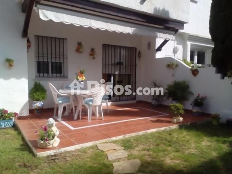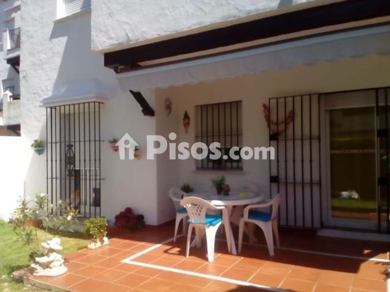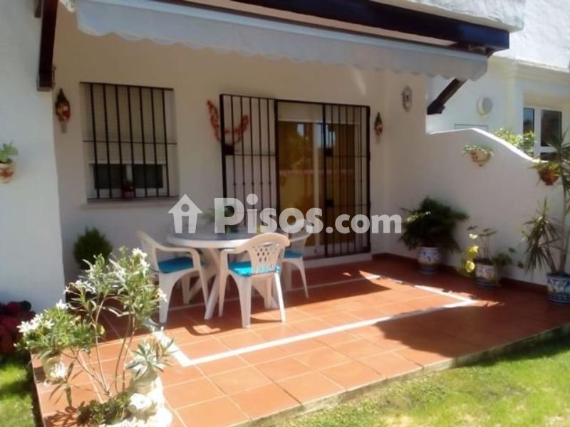 "Bajo en alquiler en Costa Ballena, Rota. Las Dunas. Capacidad (n. º máximo de plazas): 4 personas. Mascotas: No se admiten. Periodo de funcionamiento: 01/01-31/12. Consta de 3 dormitorios (1 dormitorio de matrimonio y 2 dormitorios pequeños), 1 baño con placa ducha/mampara, salón comedor, cocina americana, lavadero, patio, porche con toldo y jardín. Amueblado y totalmente equipado. Lavadora, lavavajillas, vitrocerámica de 4 fuegos, microondas, horno, frigorífico y TV. Aire acondicionado frío-calor en salón, dormitorio principal y dormitorio azul. 1 cama doble 1,35*180 en dormitorio ppal., 1 cama simple 0,90*190 en dormitorio 2º y 1 cama simple 0,90*200 en dormitorio 3º. Sofá 3 plazas y butaca en salón, mesa y 6 sillas en salón, mesa y 4 sillas en terraza. 2 armarios empotrados (dormitorio principal y dormitorio azul). En Urbanización, a 500 m de la playa, con piscina exterior de adultos y bellos jardines. WIFI en la vivienda y también en zonas comunitarias de la Urbanización. La vivienda dispondrá de al menos: vajilla, cubertería, cristalería, sartenes, ollas, cubiertos para servir, sacacorchos, abridor, tijeras, abrelatas y escurridor. Batidora, tostadora o grill, exprimidor y cafetera. Tendedero, plancha y tabla de planchar. Separación selectiva de residuos. Secador de pelo. Perchas. Ropa de cama, lencería y almohadas en función a la ocupación de la vivienda y un juego de reposición de la ropa de cama. Botiquín de primeros auxilios, extintor, detector de humos en zona próxima a la cocina, hojas de quejas y reclamaciones, información turística, instrucciones de funcionamiento de los electrodomésticos u otros dispositivos."