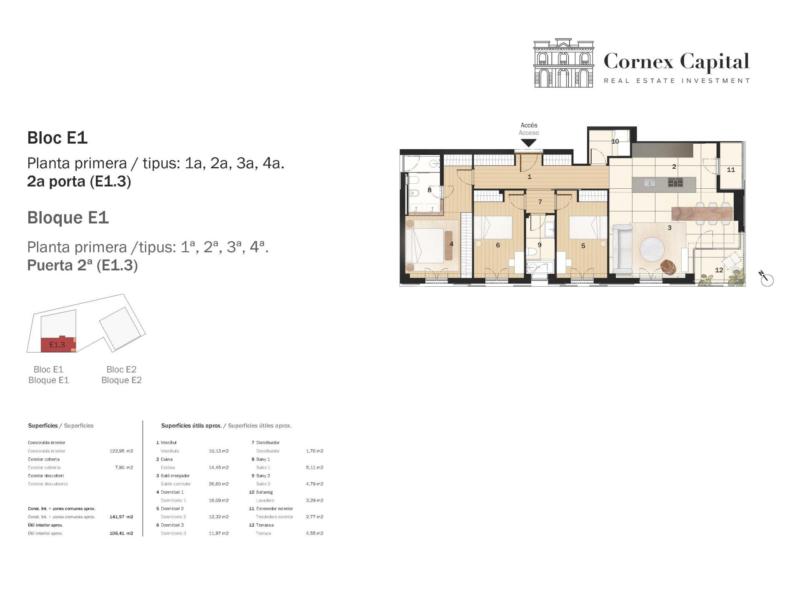 La vivienda tiene una superficie de 123m2 construidos y 106m2 útiles, dispone de 3 habitaciones y 2 baños. Terraza de 8m2.