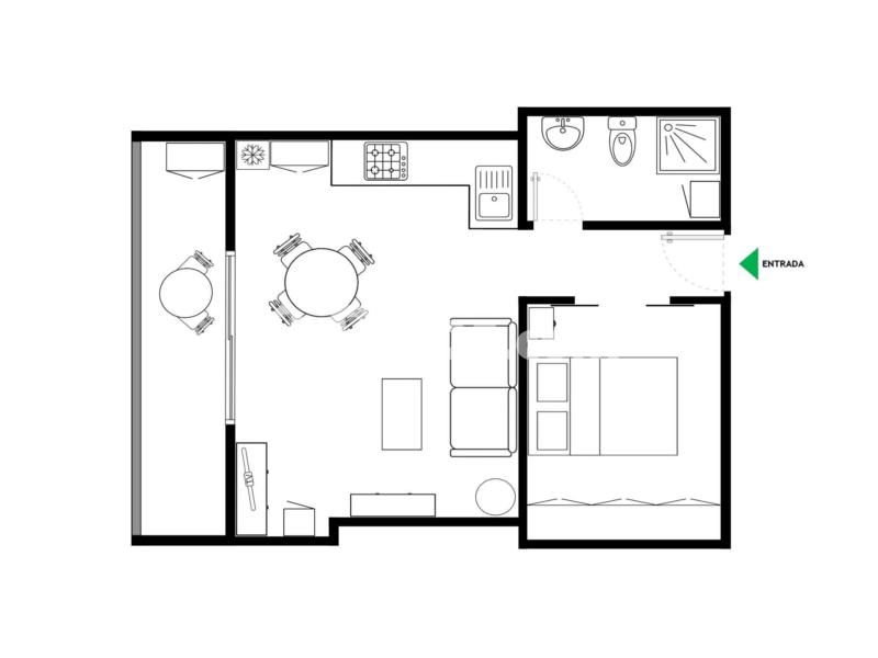 La propiedad tiene 62m² distribuido en un salón comedor, 1 habitación con cama doble, además de contar con armarios empotrados. Tiene un balcón con vista a la piscina y una cocina americana con muebles altos y bajos en buen estado. Dispone de extractor, frigorífico, horno microondas, lavadora y cocina de gas.