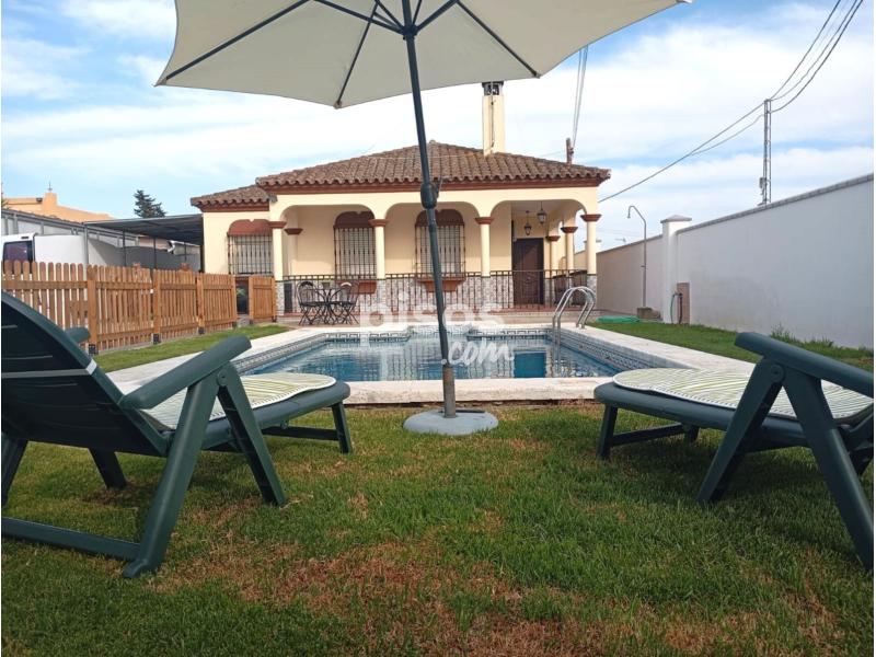 ALQUILER CHALET VERANO. Se alquila casa de 3 dormitorios con piscina, con capacidad para 7 personas. La piscina es grande y tiene espacio exterior para poder disfrutar de unos días de verano.