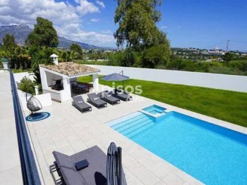 Descubra el Lujo en La Quinta, el Corazón de la Costa del Sol Descubra una villa excepcional enclavada en el prestigioso barrio de Real de La Quinta, en la soleada Costa del Sol, Andalucía. Esta exclusiva zona no solo es conocida por su belleza natural y sus impresionantes paisajes, sino también por un notable crecimiento económico que la convierte en un destino de inversión muy atractivo. La tranquilidad está garantizada en esta propiedad, situada en un callejón sin circulación que ofrece total privacidad y una serenidad inigualable, un verdadero santuario para quienes buscan un refugio privado en la vibrante costa andaluza. Con sus seis dormitorios y seis baños, esta espaciosa villa es el paraíso ideal para aquellos que buscan amplitud y confort. Se extiende sobre una impresionante parcela de 1.380 m², con un amplio interior de 485 m² diseñado para proporcionar un confort óptimo. Dispone de una cocina totalmente equipada, un elegante salón y un comedor separado. Las terrazas privadas de 167,27 m² ofrecen impresionantes vistas al exuberante jardín y la piscina, creando el ambiente perfecto para relajarse y disfrutar del envidiable clima mediterráneo. El equipamiento de esta villa es, sencillamente, excepcional. Disfrute de una piscina privada, un jacuzzi, una sauna, una sala de vapor y un gimnasio para su bienestar absoluto. Un cine privado añade un toque de entretenimiento, mientras que la oficina y la sala de reuniones son perfectas para las necesidades profesionales. La villa también está equipada con un moderno sistema de alarma, aire acondicionado y calefacción central para su comodidad durante todo el año. Situada cerca de todas las comodidades, hermosas playas, prestigiosos campos de golf y, lo que es crucial para muchas familias, excelentes colegios de la zona, esta villa es ideal para familias con niños y profesionales por igual. La seguridad de la zona, combinada con un fácil acceso al transporte, las tiendas y los restaurantes, la hace perfecta para la vida diaria, manteniéndose a la vez suficientemente alejada para garantizar paz y tranquilidad. Newbery Real Estate es la agencia con más experiencia en la zona, lo que le asegura un asesoramiento experto y la mejor atención en su búsqueda de la propiedad perfecta. ¡No pierda la oportunidad de vivir el sueño en la Costa del Sol! ¡Contacte con Newbery Real Estate hoy mismo para descubrir esta villa de ensueño!