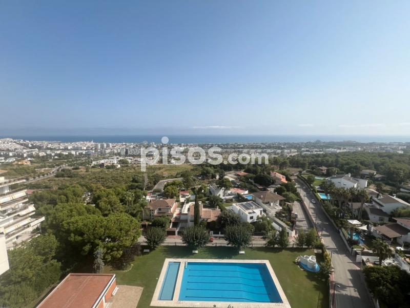 Luminoso piso en alquiler en la 10ª planta del Edificio Cumbre, una de las fincas más reconocidas de Sitges, situada en la tranquila y exclusiva zona residencial de Vallpineda – Santa Bàrbara. Su altura y orientación garantizan unas vistas espectaculares sobre Sitges y Sant Pere de Ribes, además de una gran luminosidad durante todo el día.