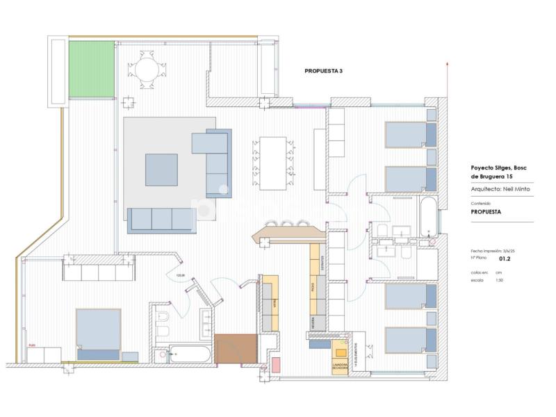Un piso totalmente exterior, con espacios amplios, vistas despejadas y situado en un entorno tranquilo, bien comunicado y próximo a colegios internacionales, servicios y a pocos minutos en coche del centro de Sitges y de la playa.
