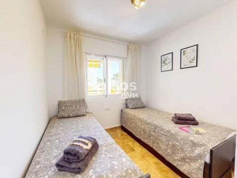 ALQUILER TEMPORAL. Disponible hasta el 31 de mayo 2026. El precio incluye gastos de comunidad, wifi y plaza de garaje. Excluye consumos de electricidad y agua. El Apartamento Girasol es el lugar ideal para disfrutar de unas vacaciones inolvidables en la Costa Blanca. Ubicado en la tranquila urbanización Cascada de las Marinas, en Dénia y con capacidad para cuatro personas. Con su ubicación inmejorable, a solo 300 metros de la playa de arena y a tan solo 1 km del centro de Dénia, podrás disfrutar de todo lo que la ciudad y sus alrededores tienen para ofrecer. Este precioso apartamento cuenta con dos habitaciones dobles. La primera, equipada con una cómoda cama de matrimonio y aire acondicionado, y la segunda, con dos camas individuales, ambas con armarios empotrados para mayor comodidad. Además, el baño completo cuenta con bañera, perfecto para relajarte después de un día de playa. El salón-comedor es un espacio acogedor, también con aire acondicionado y una Smart TV, para que puedas disfrutar de tus momentos de ocio. Desde el salón, accedes a una terraza delantera con vistas a la piscina comunitaria, equipada con muebles de exterior ideales para disfrutar de comidas al aire libre. La cocina está completamente equipada con todo lo necesario para que te sientas como en casa, incluyendo una vitrocerámica, cafetera Dolce Gusto, exprimidor, tostadora y mucho más. Aunque no tiene lavavajillas, cuenta con todo lo que necesitas para una estancia cómoda y agradable. Pero lo mejor de este apartamento es su segunda terraza, una joya del espacio. Amplia, con barbacoa de obra, tumbonas, toldo, sombrillas y mesa de comedor, es el lugar perfecto para disfrutar de cenas al aire libre, tomar el sol o simplemente relajarte en el ambiente tranquilo de la urbanización. Además, podrás conectarte a internet sin problemas gracias al WiFi gratuito de 1000 Mbps disponible en todas las estancias. El Apartamento Girasol es ideal para quienes buscan una experiencia vacacional relajante y cómoda en Dénia.