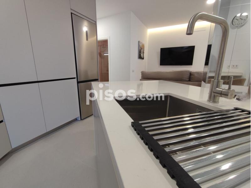 El corazón del piso es una moderna cocina americana integrada con un salón comedor muy luminoso, destacando la práctica isla con fregadero y un equipamiento completo de alta gama que incluye nevera, lavadora-secadora, vitrocerámica, microondas, horno y extractor.
