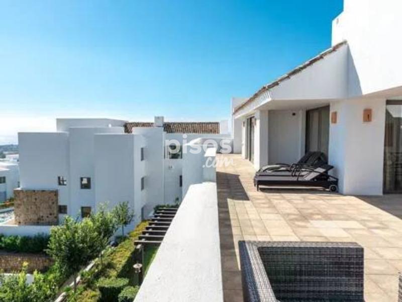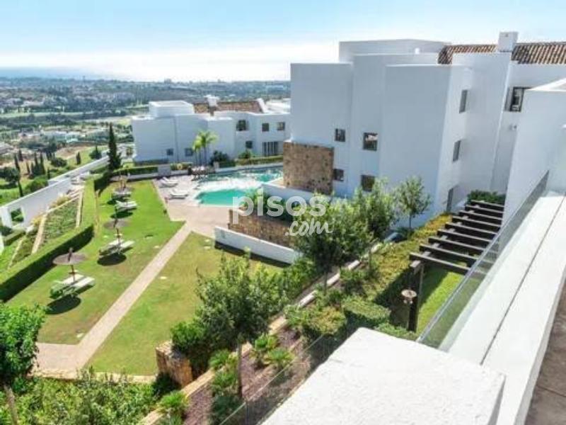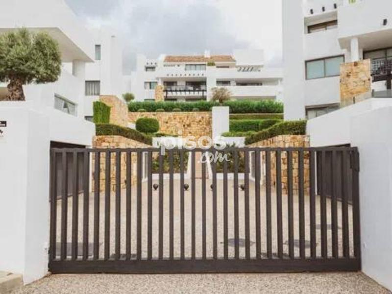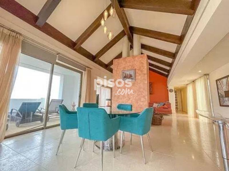 ÁTICO DE LUJO CON VISTAS PANORÁMICAS AL GOLF Y GIBRALTAR EN LOS FLAMINGOS Ático de 3 dormitorios ubicado en una de las mejores urbanizaciones de Los Flamingos, en primera línea del prestigioso campo de golf de 18 hoyos Los Flamingos Golf y del hotel de 6 estrellas Villa Padierna, ideal para quienes buscan un estilo de vida de alta calidad con vistas espectaculares y acceso directo al golf. Este ático se encuentra en perfectas condiciones, construido con materiales de la mejor calidad y un estilo contemporáneo. Dispone de un maravilloso y espacioso salón con chimenea y comedor, que se abre a una gran terraza con vistas panorámicas al campo de golf, a la costa mediterránea y a Gibraltar. La propiedad consta de tres dormitorios; el principal cuenta con un amplio vestidor y un baño doble privado con ducha a ras de suelo. La cocina está totalmente equipada con todos los electrodomésticos. El complejo residencial cuenta con dos piscinas al aire libre y cuidados jardines paisajísticos, ofreciendo un entorno tranquilo y exclusivo. Se encuentra en primera línea del prestigioso campo de golf Los Flamingos, junto al reconocido hotel Villa Padierna, lo que subraya la calidad y el entorno de la urbanización. La compra incluye dos plazas de aparcamiento y un trastero, proporcionando comodidad y espacio adicional. La ubicación en Los Flamingos garantiza un acceso privilegiado a uno de los campos de golf más prestigiosos de la zona.