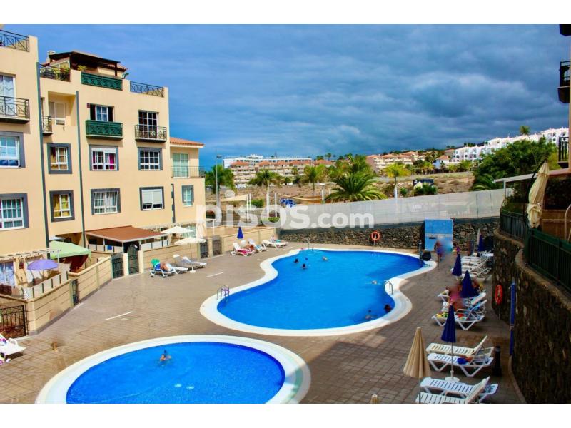 Se alquila apartamento dúplex con amplia terraza. Ubicado en Callao Salvaje, Costa Adeje, cuenta con dos dormitorios, dos baños, salón y aparcamiento. Se requiere aval bancario o seguro de alquiler. El complejo cuenta con piscina y está a pocos metros de la playa.
