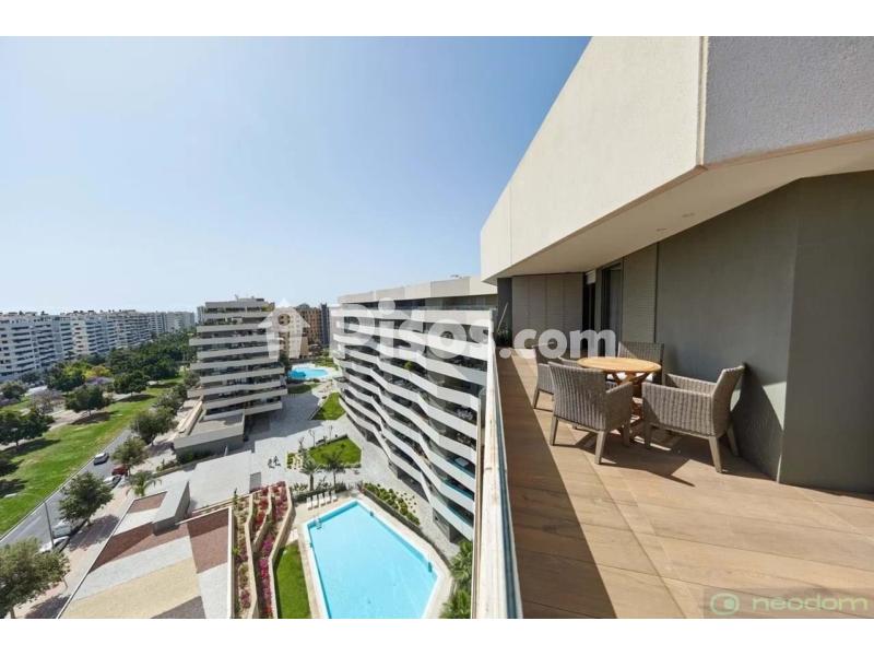 Se ofrece en alquiler un elegante ático con cuatro amplios dormitorios, tres baños modernos, una gran cocina, un acogedor salón y una hermosa terraza con vistas panorámicas.