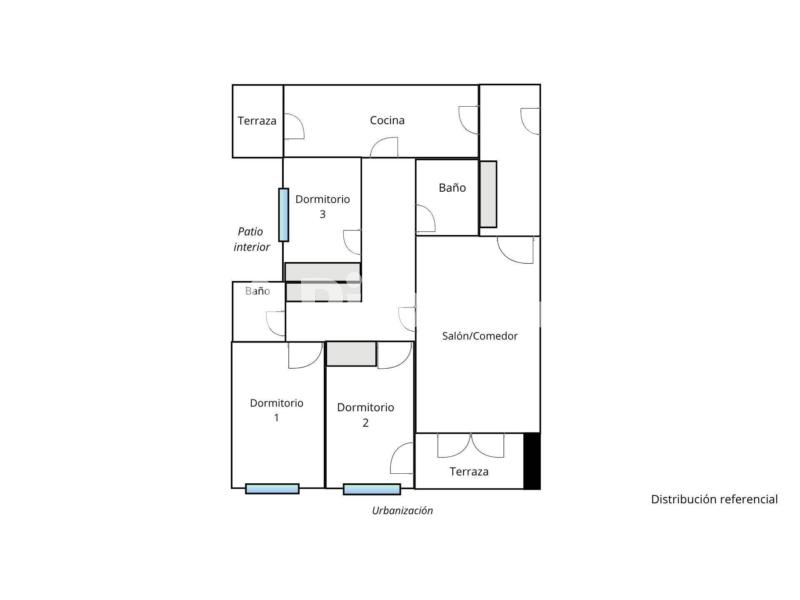 - Distribución muy cómoda: tres dormitorios y salón con salida directa a la terraza.