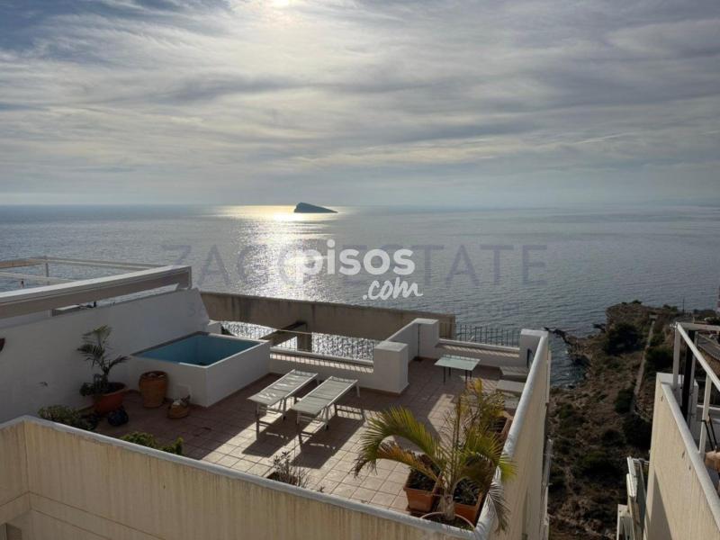 Se alquila espectacular dúplex de dos plantas situado en una de las zonas más exclusivas del Rincón de Loix, Benidorm, con vistas frontales al mar que se disfrutan desde una impresionante terraza de 60 m², muy soleada durante todo el día y equipada con jacuzzi privado, ideal para relajarse y disfrutar del entorno. La vivienda se distribuye en dos cómodas plantas y ofrece amplios y luminosos espacios, contando con 3 dormitorios, todos ellos con armarios empotrados, y 2 baños completos. La cocina es independiente, totalmente equipada y con galería, lo que aporta un espacio adicional de almacenaje y funcionalidad. El dúplex dispone de aire acondicionado, se entrega totalmente amueblado y listo para entrar a vivir. Desde la terraza se puede disfrutar de vistas abiertas y directas al mar, convirtiéndose en uno de los grandes atractivos de la vivienda. Incluye plaza de parking, aportando comodidad y seguridad. Ubicado en una urbanización cerrada, el residencial ofrece una espectacular piscina infinita con vistas panorámicas al mar, zonas comunes cuidadas y un entorno tranquilo y exclusivo. Excelente ubicación, con fácil acceso a todos los servicios, comercios, transporte y a pocos minutos de la playa. Condiciones del contrato y más información disponibles por teléfono. #ref:A414 - A414 - ZAGO ESTATE SL