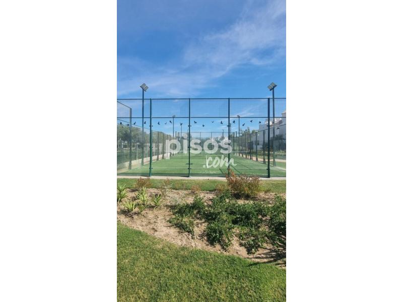 Las zonas comunes están dotadas de dos pistas de pádel, dos piscinas, veinte plazas de aparcamiento de cortesía, estacionamiento para bicicletas, y amplias zonas ajardinadas en su interior.