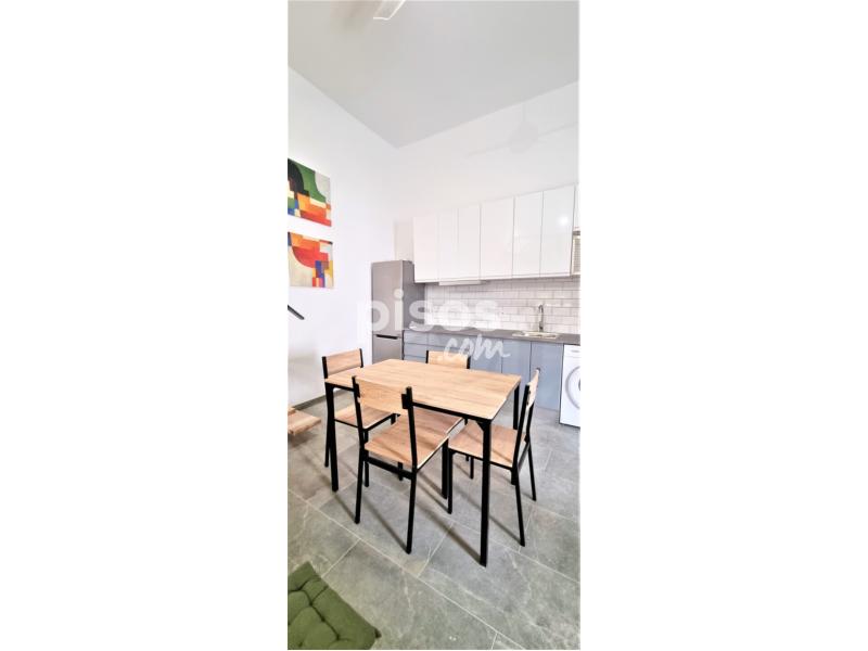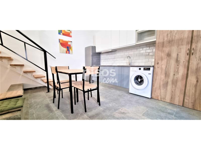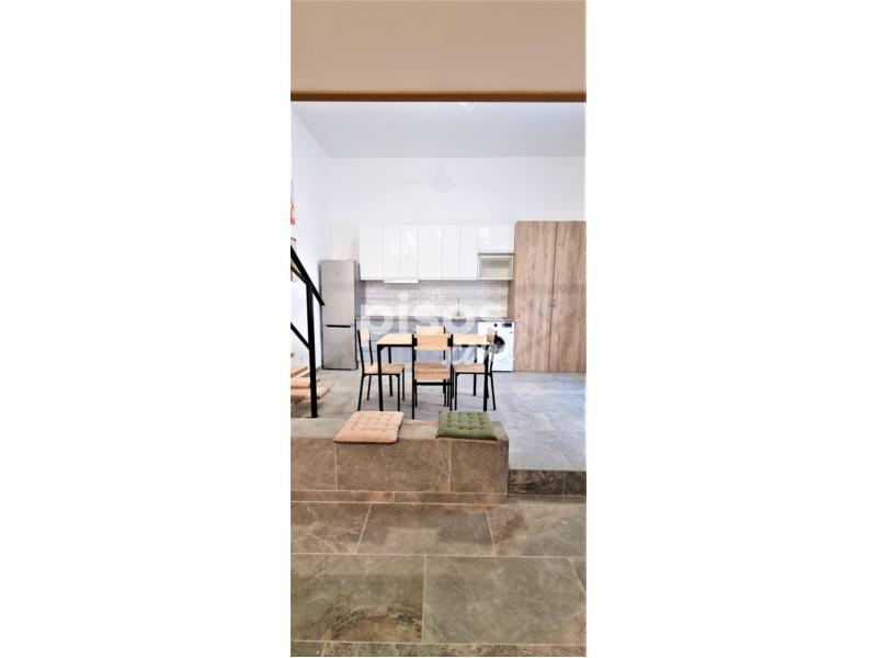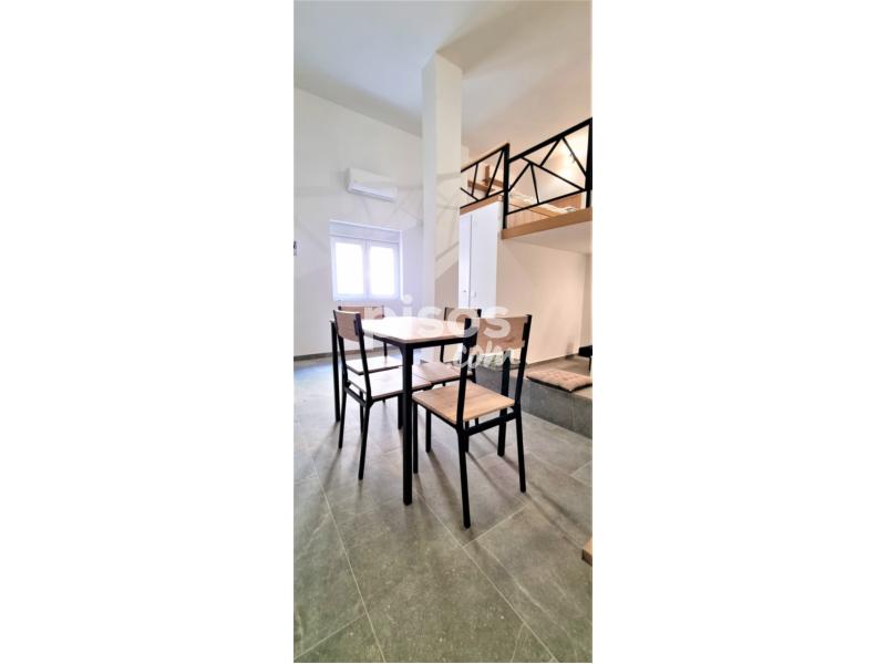 El piso cuenta con;. - Una amplia cocina / comedor estilo americana, con electrodomésticos y muebles. - Un salón equipado con sofá cama, mesa de centro y TV. - Un cuarto de baño con plato de ducha con mampara. - Y un dormitorio abuhardillado, con su cama de matrimonio, y un escritorio por si los inquilinos trabajan desde casa.