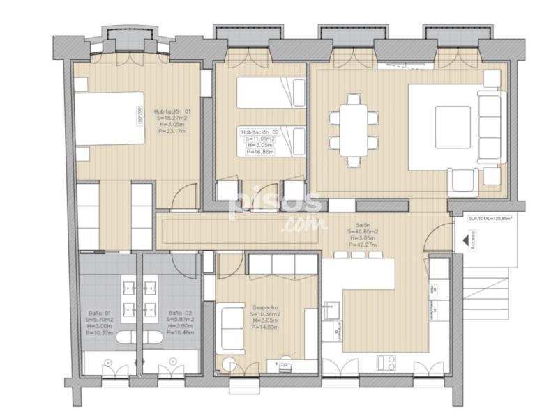Cabe destacar la gran altura de los techos del piso