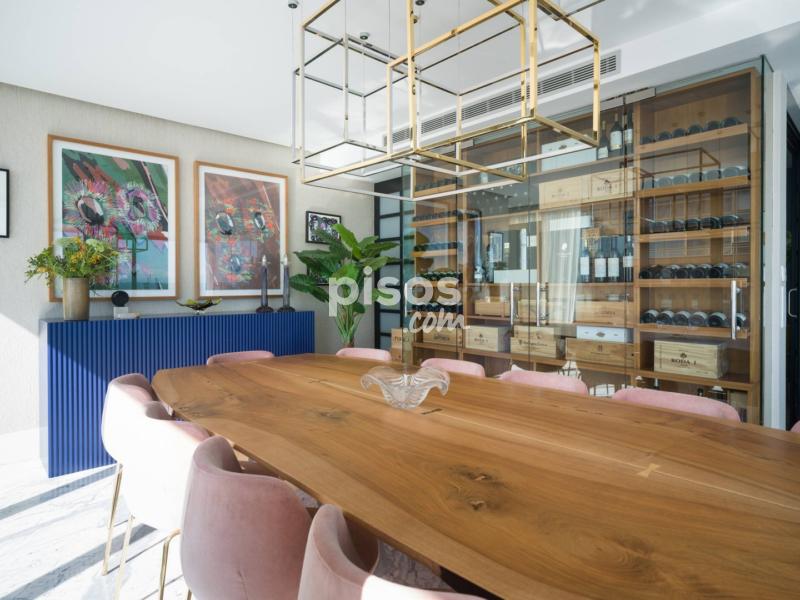 El salón principal, amplio y majestuoso, está diseñado para disfrutar y recibir, incorporando una sofisticada vinoteca de estilo profesional, propia de los mejores restaurantes, que aporta personalidad y exclusividad al espacio. Desde aquí se accede a una terraza acristalada, ideal para contemplar el mar durante todo el año en un ambiente íntimo y privilegiado.