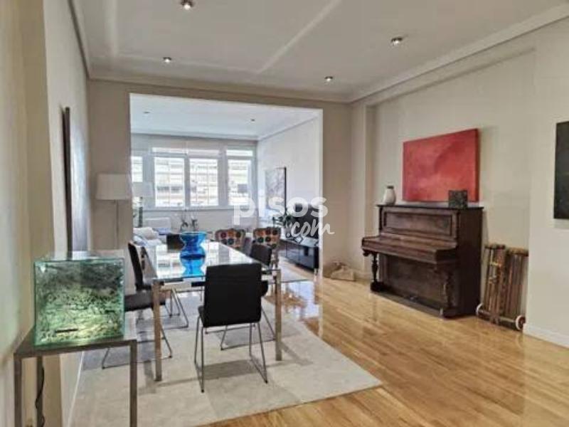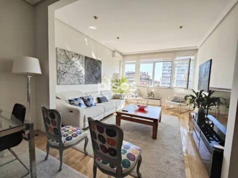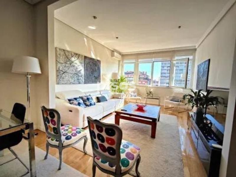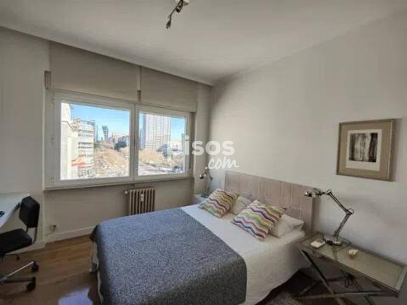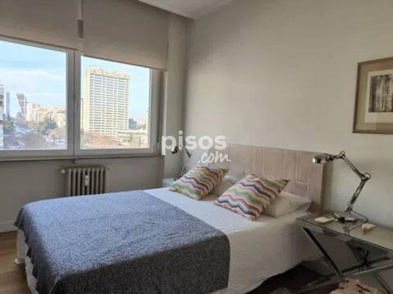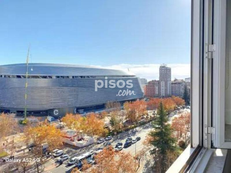 **Piso Elegante en la Castellana - ¡Tu Nuevo Hogar Te Espera! ** Descubre este impresionante piso de 3 dormitorios, ubicado en una planta elevada con vistas panorámicas a la Castellana y al emblemático estadio Santiago Bernabéu. Con una superficie de 154 m², cada rincón de este hogar ha sido diseñado para ofrecer comodidad y estilo. La distribución funcional incluye tres amplios dormitorios y dos baños completos, uno de ellos en suite, perfectos para adaptarse a tus necesidades. La luz natural inunda todas las estancias gracias a los grandes ventanales, creando un ambiente cálido y acogedor. La cocina y la zona social cuentan con vistas despejadas, ideales para disfrutar de momentos inolvidables con amigos y familiares. Además, el piso está amueblado y completamente equipado, con una decoración cuidada que refleja sofisticación. Este elegante hogar no solo ofrece confort, sino también un sistema de aire acondicionado y calefacción central individual, garantizando bienestar en cualquier época del año. La accesibilidad para personas con movilidad reducida y el servicio de portería diario añaden un plus de comodidad. Incluye una plaza de aparcamiento exterior y los gastos de comunidad y seguro de hogar están incluidos en el precio. Ubicado en una zona dinámica y consolidada de Madrid, tendrás acceso a excelentes comunicaciones y servicios cercanos, así como a comercios y zonas de ocio. No pierdas la oportunidad de vivir en este espectacular piso que combina elegancia, confort y una ubicación inmejorable. ¡Contáctanos para más información y ven a verlo!