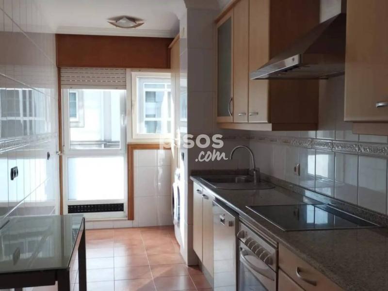 Santiago centro, rua lopez ferreiro, se alquila piso sin muebles, tres habitaciones todas con balcón, armarios empotrados, dos baños completos, uno en suit con bañera de hidromasaje, cocina equipada, combi, vitro, lavavajillas, salón, garaje, trastero, calefacción gas ciudad, gastos de comunidad incluidos en el precio. Posibilidad de alquilarlo amueblado. Piso exterior.