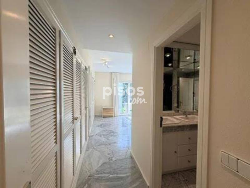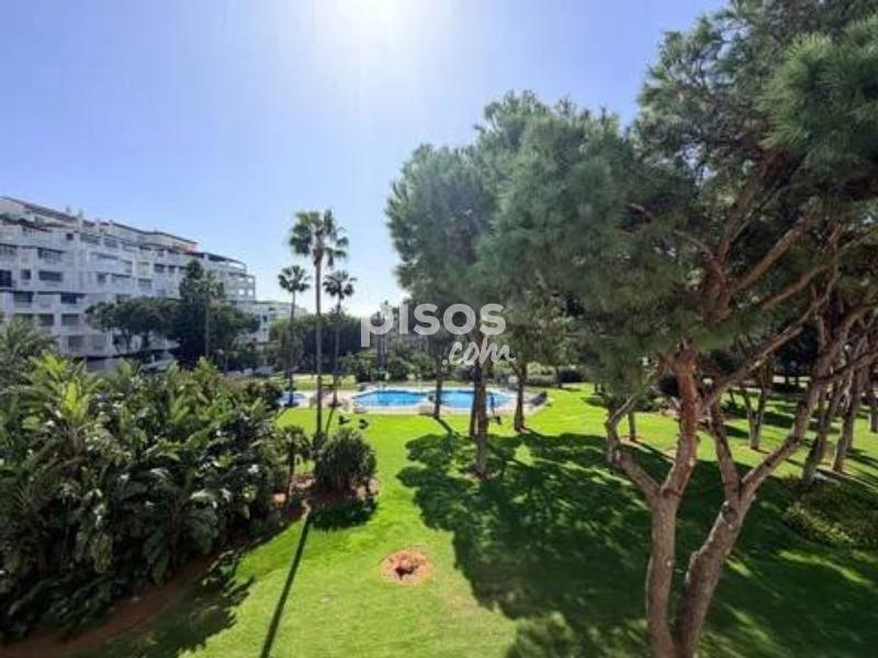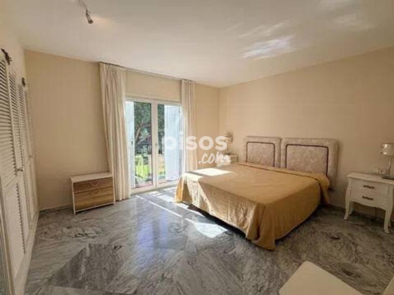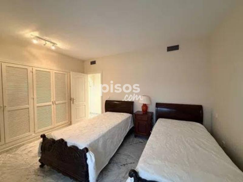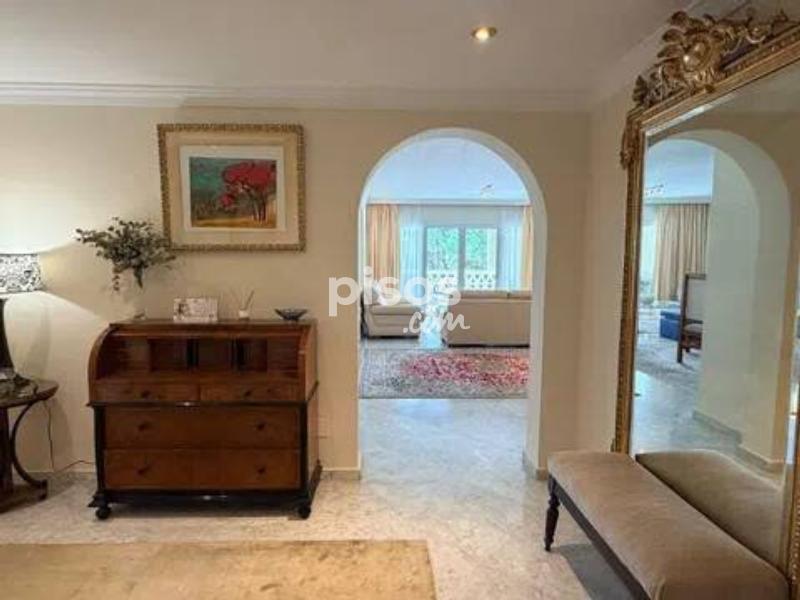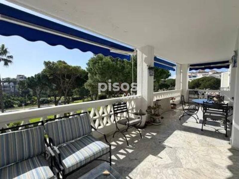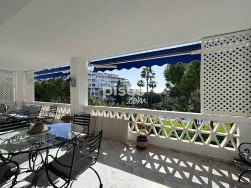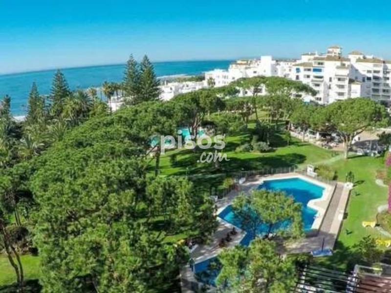 Vivir en primera línea en Puerto Banús es un privilegio reservado a muy pocos, y este espectacular apartamento en Playas del Duque, Edificio Sevilla, lo confirma desde el primer instante. Ubicado en una de las urbanizaciones más exclusivas de la zona, con acceso directo tanto a la playa como al propio Puerto Banús, ofrece una combinación perfecta de ubicación, amplitud y estilo de vida. La vivienda cuenta con aproximadamente 375 m² interiores más 30 m² de terraza cubierta con magníficas vistas, ofreciendo espacios generosos y llenos de luz natural. Desde su espacioso hall se accede a un amplio salón y a una biblioteca, además de un elegante salón comedor independiente; ambos con grandes ventanales, una luminosidad excepcional y salida directa a una agradable terraza ideal para disfrutar del clima de Marbella durante todo el año. Dispone de cinco dormitorios dobles de gran tamaño y cinco baños completos, tres de ellos en suite, todos con armarios empotrados que aportan funcionalidad y orden. La cocina está totalmente equipada e incluye office, además de una práctica zona independiente de lavado y planchado, pensada para el máximo confort en el día a día. Como valor añadido diferencial, el inmueble incluye dos amplias plazas de garaje con capacidad para vehículos de hasta 6 metros, un auténtico lujo en esta ubicación. La urbanización es simplemente excepcional: premiada con el Premio Andalucía de Jardinería, ofrece impresionantes zonas comunes, tres piscinas, dos restaurantes propios y servicio de seguridad 24 horas, garantizando privacidad y tranquilidad. Todo ello con acceso directo a la playa y a Puerto Banús, permitiendo disfrutar caminando de boutiques, restaurantes y el puerto deportivo más emblemático de la Costa del Sol. Un apartamento único por su amplitud, su ubicación privilegiada en Puerto Banús y sus comodidades exclusivas, ideal para quienes buscan vivir el lujo frente al mar sin renunciar a espacio y privacidad.