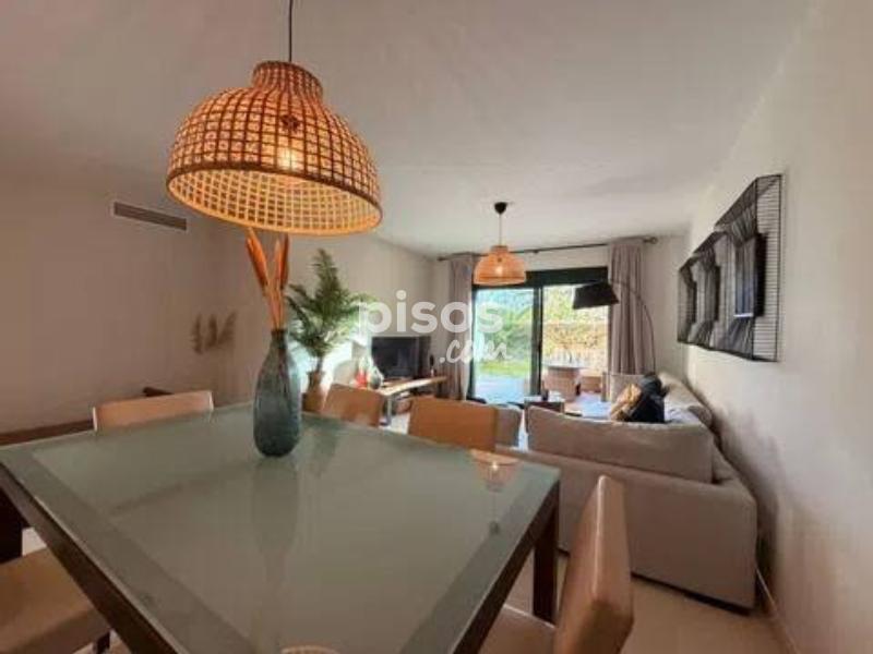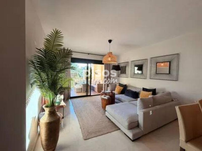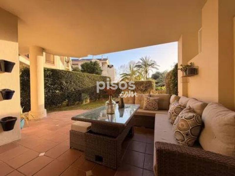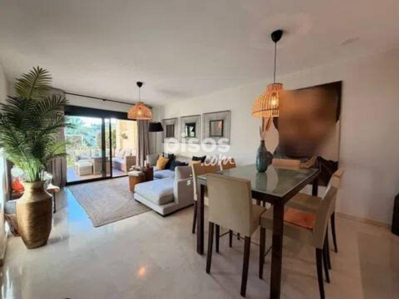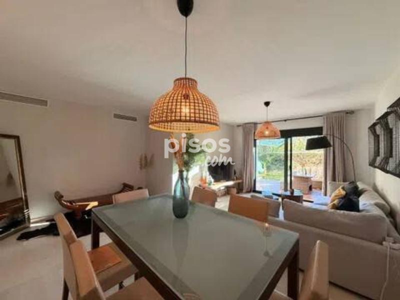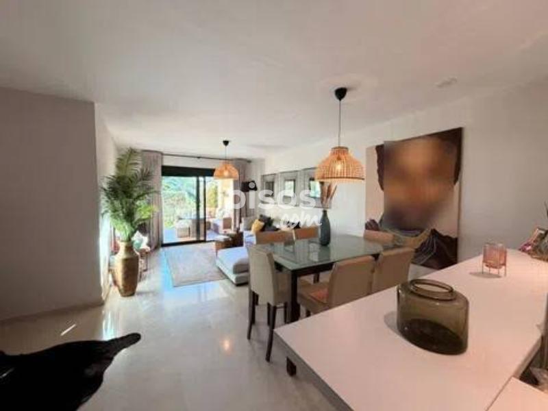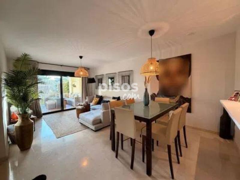Guadalcántara Golf | Planta baja reformada con jardín privado | Cocina abierta | Seguridad 24h Planta baja reformada de alto nivel en Guadalcántara Golf (Guadalmina Alta), con porche amplio y jardín privado. Vivienda lista para entrar, con reforma reciente y una cocina abierta al salón de gran calidad, equipada y mobiliario cuidado. La vivienda ofrece 150 m2 construidos distribuidos en un gran salón-comedor con salida directa a la terraza, cocina abierta con isla y zona de desayuno, 2 dormitorios y 2 baños completos. Aire acondicionado-calefacción central, armarios empotrados y plaza de garaje incluida.