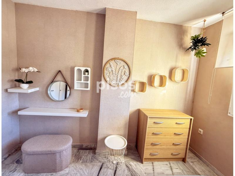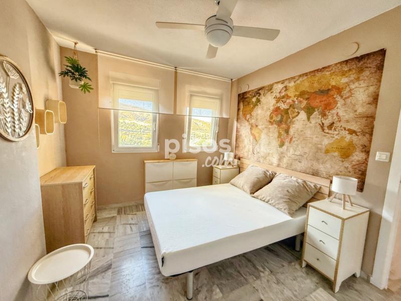 * ??? 1 dormitorio Con una bonita decoración consta de cama de matrimonio (el colchón a estrenar 135x190) armario empotrado de gran capacidad, sinfonier, 4 zapateros y pequeño tocador, Tiene ventilador de techo y doble ventana con vistas.