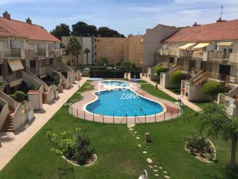 *PRECIO 7 NOCHES 1ª QUINCENA DE JULIO: 900 € *PRECIO 14 NOCHES 1ª QUINCENA DE JULIO: 1.650 € *PRECIO 14 NOCHES 2ª QUINCENA DE JULIO: 1.750 € *PRECIO 14 NOCHES 1ª QUINCENA DE AGOSTO: 1.850 € Apartamento tipo dúplex en urbanización Tarraco. En planta baja dispone de salón-comedor con cocina americana, terraza con vistas a la zona comunitaria, una habitación doble y baño completo. En planta superior nos encontramos con una habitación triple (cama de matrimonio más cama individual) y un aseo. Climatizado (bomba de frío-calor en planta baja y ventilador en planta superior). Zona comunitaria ajardinada con piscina. Situado en urbanización muy tranquila dotada de todos los servicios necesarios (supermercados, tiendas, restaurantes, zonas de juegos infantiles, etc), y a 3 km del centro de Cambrils.