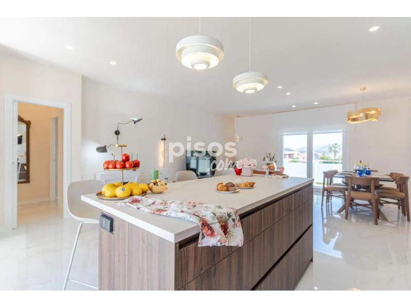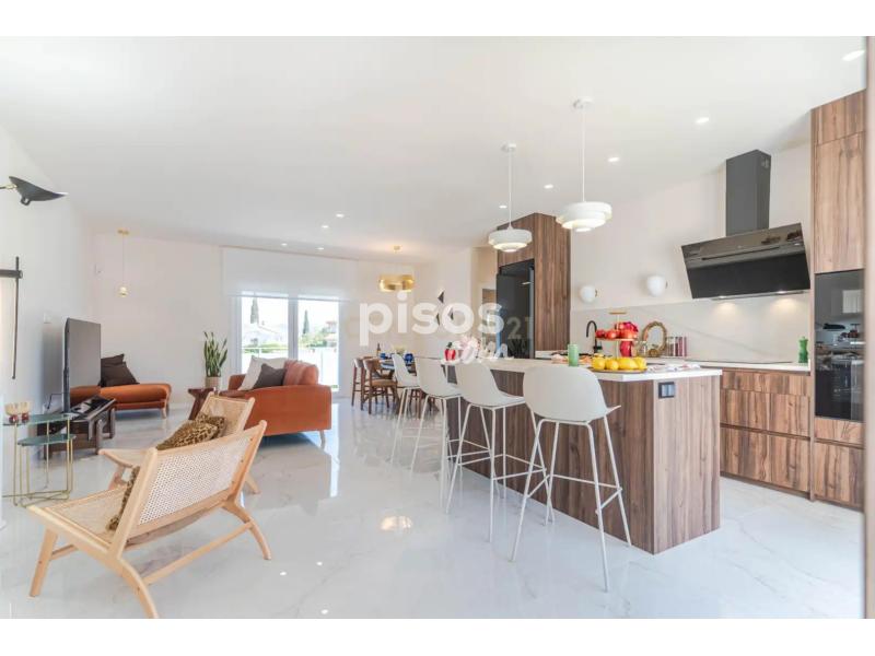 La casa se divide en dos niveles destacando el superior donde se ubica la mayor parte de la vivienda con un salón con cocina americana con más de 40 m2 y salida directa a la zona de piscina y gran terraza con vistas panorámicas, 3 dormitorios con armarios-vestidores tipo suite todos y un aseo. El nivel inferior queda reservado a un gran espacio de garaje para varios vehículos, un aseo, zona de lavandería, sala de máquinas y la versatilidad que te aporta una zona diáfana de gran capacidad superficial.