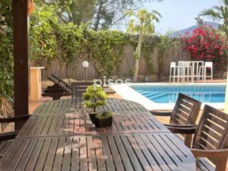 Alquiler larga temporada chalet en la urbanization Condes de Isa En la primera planta: Cocina totalmente equipada y amueblada, salon - comedor con acceso a la terrace con piscina privada, un aseo En la segunda planta: Tres dormitorios, dos cuartos de baños En la planta baja: garaje, trastero.