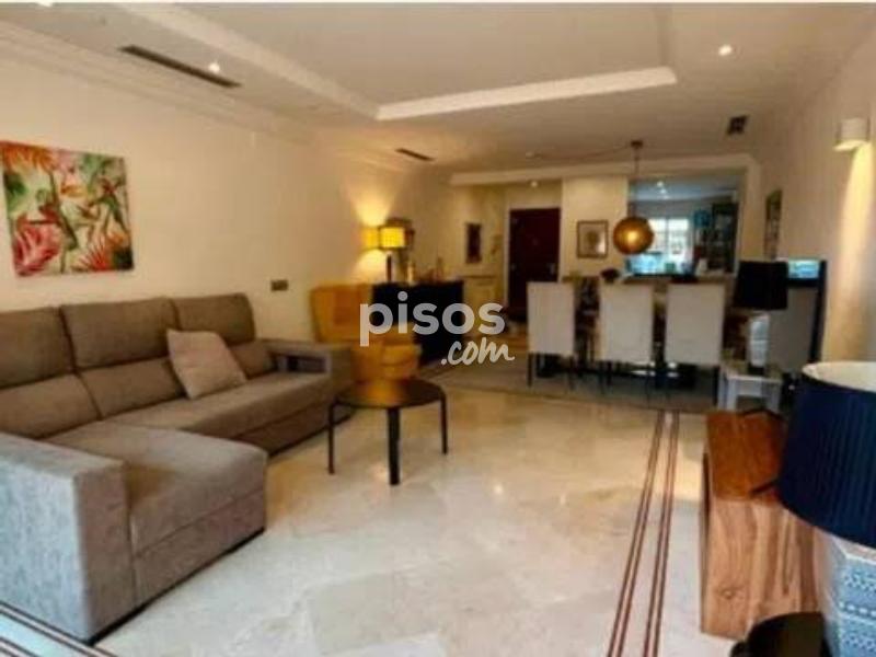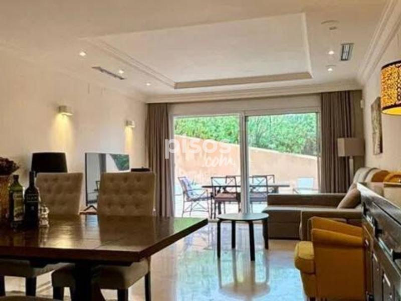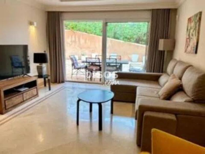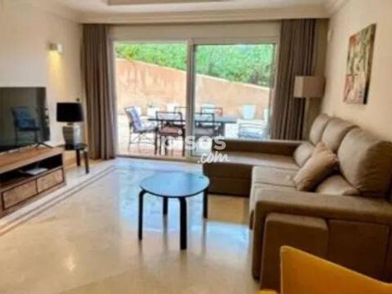 Se alquila larga temporada el apartamento en la urbanization Aloha Hills Cocina totalmente equipada y amueblada, salon - comedor con acceso a la terraza, tres dormitorios, dos cuartos de baños Plaza de garaje Piscina comunitaria.