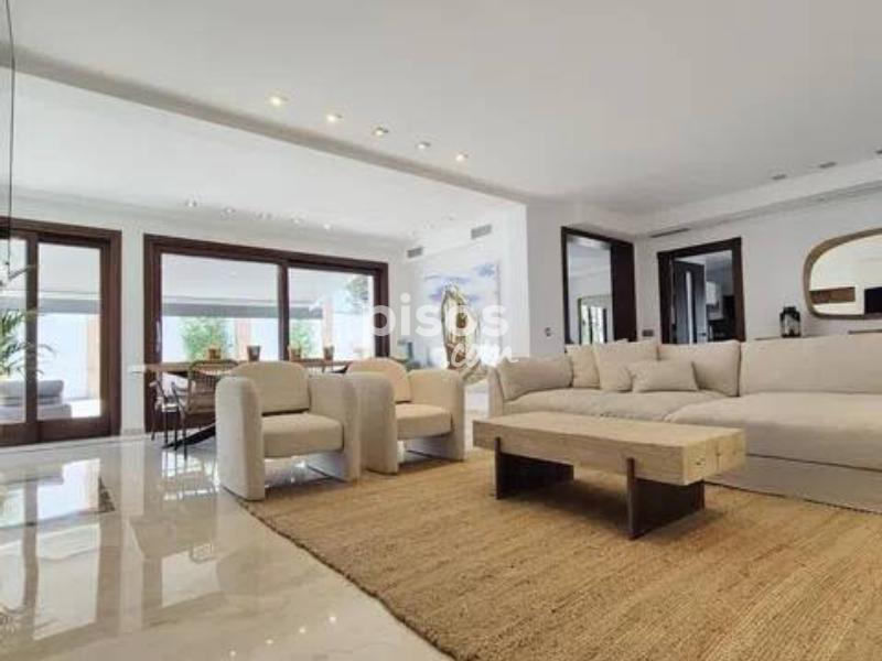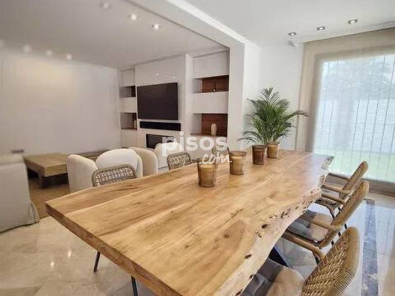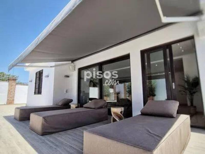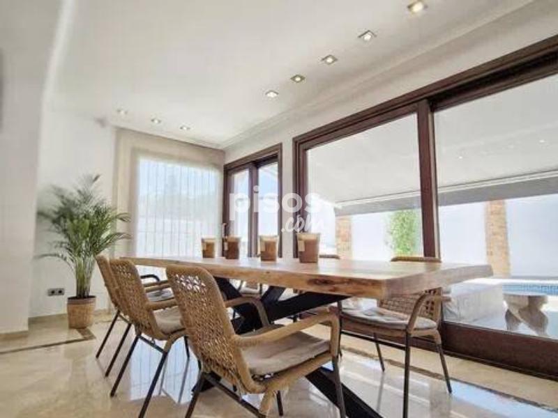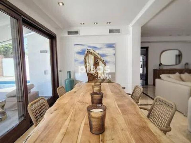 Alquiler larga temporada villa recien renovada en San Pedro de Alcántara En la primera planta: Cocina totalmente equipada y amueblada, salon - comedor con acceso a la terraza con piscina y la zona de la barbacoa, un aseo En la segunda planta: Tres dormitorios, dos cuartos de baños En la Casa de invitados: Un dormitorio, mas un cuarto de baño Plaza de garaje.