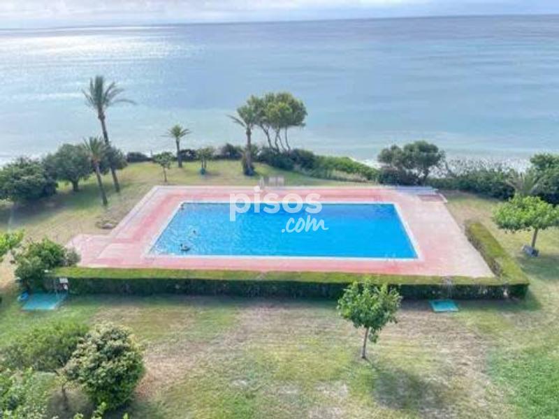 Apartamento en primerísima línea con impresionantes vistas frontales al mar. Consta de salón-comedor, cocina semindependiente, dos habitaciones dobles, un baño completo y terraza con vistas a la zona comunitaria y al mar. Se alquila completamente amueblada y equipada. Climatización en todas las estancias. Exclusiva y paradisíaca zona comunitaria con piscina delante del mar, extensa zona ajardinada y arbolada circundante y acceso directo a una espectacular playa contigua. Plaza de parking cubierta dentro del recinto comunitario. Conserje todo el año.