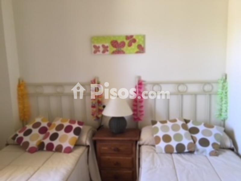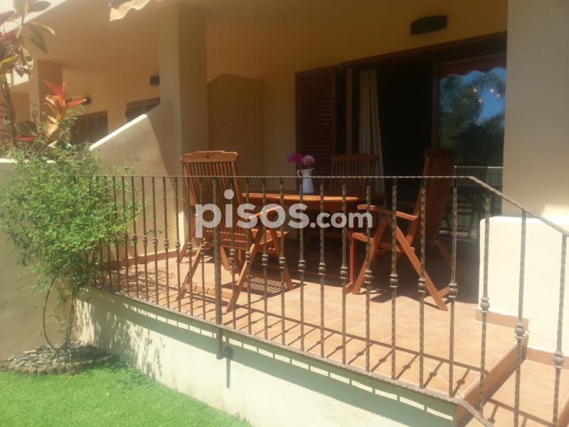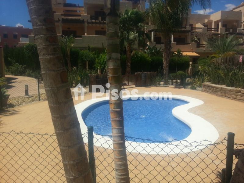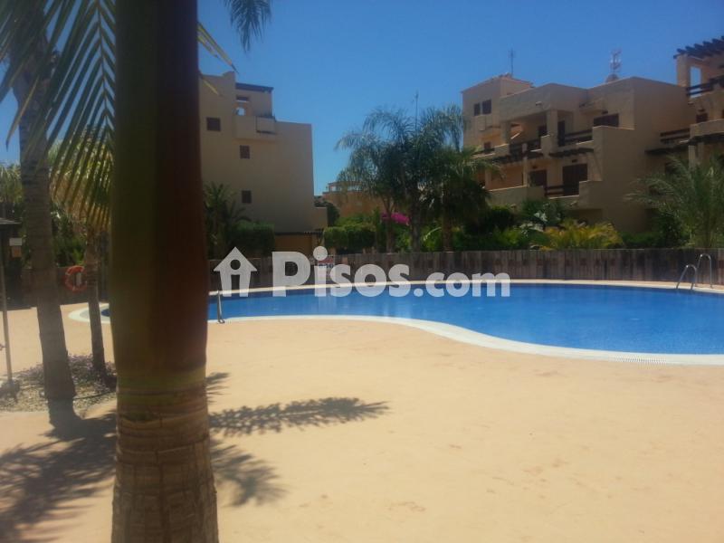 Disponible inmediatamente y hasta finales de junio. Aparte, se alquila por quincenas en julio y agosto. Precio según quincena a consultar. Escribir a mediterraneanvera@gmail.com o llamar al 679009268 sólo por Whatsapp. Acogedor apartamento con capacidad máxima para 4 personas en la preciosa urbanización Bahía Fenicia, situada en Vera Playa. Esta urbanización está en una zona tranquila y está vallada, y es ideal, por ser muy segura, para los niños. El apartamento es una planta baja con jardín, dos dormitorios (dormitorio principal con suite, con una cama de matrimonio, y segundo dormitorio, con dos camas individuales), dos baños (uno con bañera y otro con plato de ducha), salón comedor con televisión (con un sofá cama), cocina independiente, lavadero y amplia y soleada terraza-porche con orientación Este, con vistas a la piscina, desde donde se accede a un gran jardín privado con salida directa al jardín comunitario y a la zona de piscinas, que se compone de dos piscinas comunitarias y otras dos piscinas infantiles. El estado de conservación del apartamento es perfecto, totalmente amueblado con muebles de provenzal y forja y cocina equipada con horno, vitrocerámica, campana extractora, microondas, lavadora, frigorífico, vajilla, cubertería y utensilios de cocina. Equipado con aire acondicionado y bomba de calor por conductos en todas las estancias. Tiene como anexo dos plazas de parking privadas de superficie techadas con pérgolas de madera. Entorno mayoritariamente turístico pero con algunas viviendas de primera residencia, tiene todos los servicios cercanos, un Mercadona y un Consum a 3 minutos en coche, restaurantes, bancos, bares, cafeterias, etc. Además está a un paso del parque aquático de Vera y a tan solo trescientos metros de la preciosa playa del Playazo, sus típicos chiringuitos, y su maravilloso Club de playa. Justo detrás de la urbanización hay un parque infantil situado en el Paseo de los Limoneros. Este paseo está frecuentado por gente que hace deporte, ya que es el sitio ideal para tal fin, por su naturaleza, veredas, caminos y zonas arboladas y de sombra. El apartamento está a quince minutos de la autopista, a cuarentaicinco minutos del aeropuerto de Almería y a tan solo cinco minutos de la futura estación del AVE de Vera. La parada del autobús urbano está justo en frente de la urbanización. Este autobús, va, entre otras localidades, a Vera pueblo, que está a 6 km, a Garrucha, que está a 5 km, y a Mojácar, que está a 8 km.