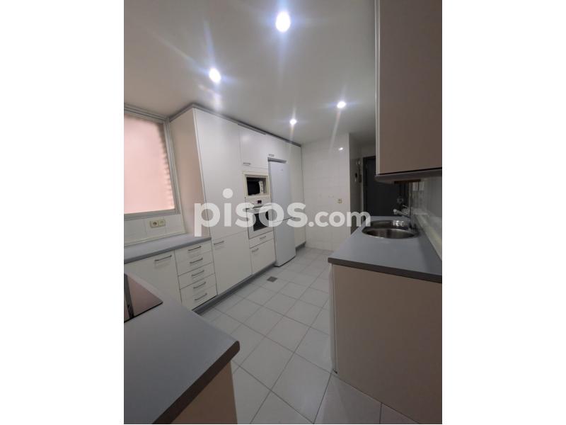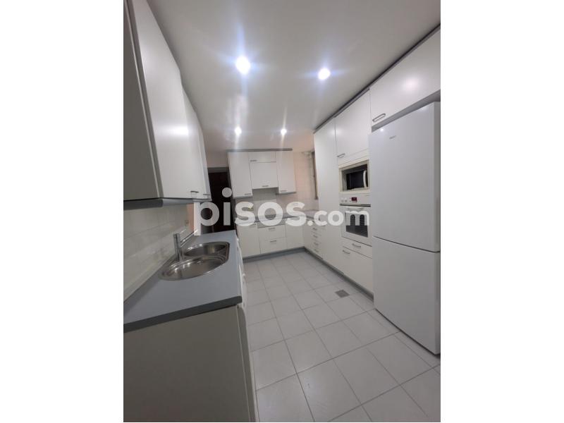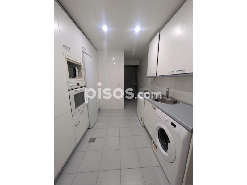 Está formado por tres dormitorios grandes con sus armarios empotrados, tres baños (en la cocina, en el dormitorio principal y en el pasillo, salón-comedor con terraza y cocina equipada con electrodomésticos, vitroceramica + zona grande de despensa. La vivienda se alquila sin amueblar. Dispone además de entrada de servicio, suelos de madera, calefacción central y aire acondicionado en el salón + dormitorio principal. Cuenta con gran trastero y plaza de garaje incluidos en el precio.