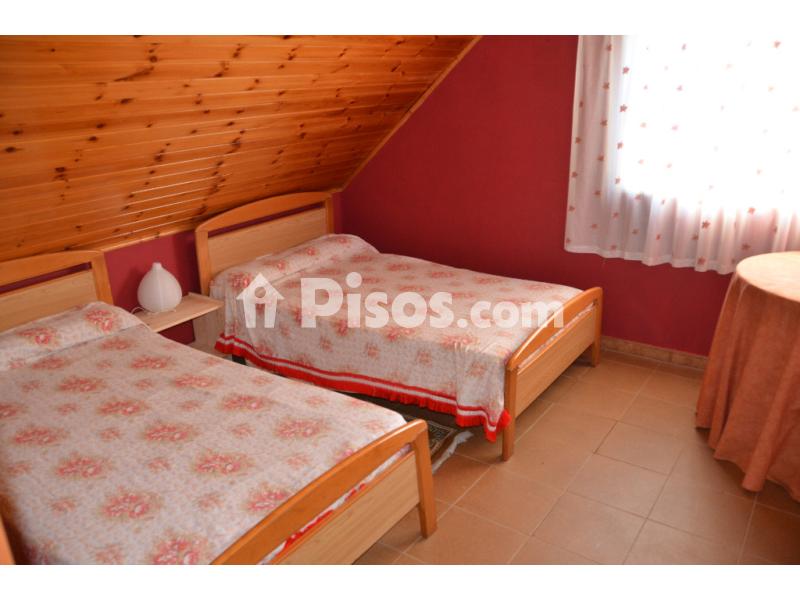 El chalé está totalmente amueblado y se divide en dos plantas. En la planta de abajo está la cocina-comedor, un aseo con ducha y una habitación con cama de matrimonio. En la planta de arriba se encuentra otro aseo con ducha, una habitación con cama de matrimonio y una habitación con camas gemelas. El alojamiento incluye ropa de cama, toallas, vajilla, cubiertos y demás utensilios de cocina.