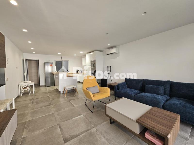 Al entrar a la vivienda, te recibe un amplio salón totalmente amueblado y con aire acondicionado, conectado de manera diáfana con una cocina en forma de L que incluye una isla central. La cocina está completamente equipada con horno, microondas, vitrocerámica y todo lo necesario para cocinar tus platos favoritos.