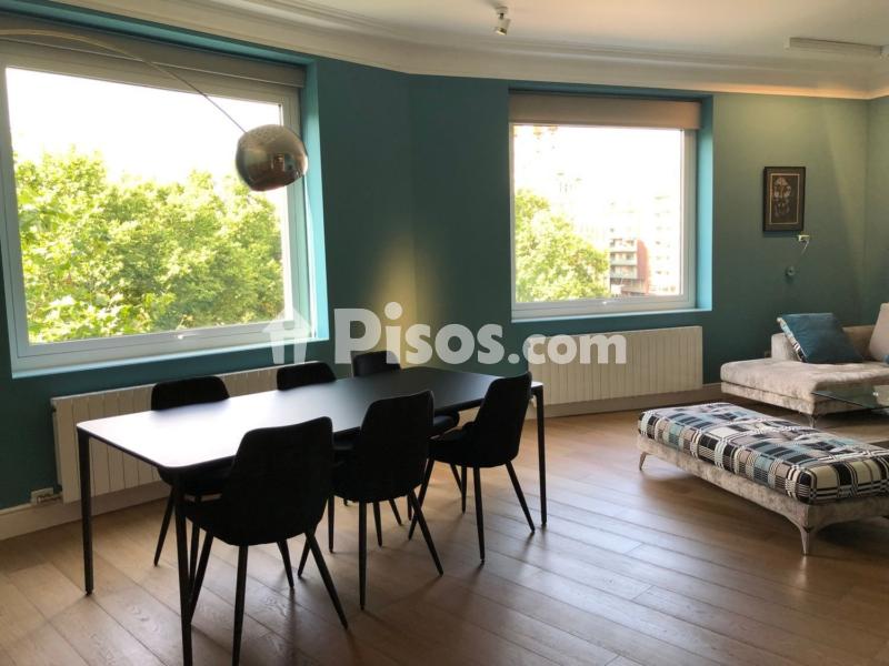 Piso espectacular de Alto Standing! decorado por un profesional! todo nuevo a estrenar en Finca señorial en plaza Kennedy. Es un cuarto piso con mucha luz y le va dando el sol dependiendo del horario del día. Ventanas enormes con el mejor sistema de aislamiento de ruido y climatización con vistas despejadas hacia los jardines de la Tamarita y el edificio La Rotonda y el parque de Passatge Maluquer. Persianas eléctricas. Techos altos y suelo de parquet de madera de láminas anchas muy actual. Todo de máxima calidad. Se entra por un gran vestíbulo que comunica con un distribuidor que nos abre un gran salón comedor y a una cocina cerrada pero abierta de una manera original con un pasamanos con puertas por si se desea cerrar en alguna ocasión. Tenemos también un aseo de micro cemento de cortesía. Los muebles de la cocina de máxima cálida y con mucho almacenaje son preciosos de color visón brillante y con encimera del mejor mármol. Tiene una isla que nos permite una gran superficie de trabajo. Tiene los electrodomésticos integrados: horno, microondas, dos neveras, lavavajillas y cocina de gas. Esta completamente equipada con vajilla, cristalería, cubiertos... Desde la cocina accedemos a una tercera habitación individual con muchos armarios y con un baño con ducha tipo suite. También tenemos un cuarto lavadero con lavadora, secadora y la caldera. La parte de las habitaciones tenemos dos grandes dobles con cama de matrimonio y baño tipo suite. La suite principal es muy espaciosa y ocupa una habitación con puertas correderas donde hay un gran vestidor, un espacio abierto con dos lavamanos y cajones y una bañera de diseño y ducha con hidromasaje y wc cerrados y una original separación donde tenemos la cama hacia una gran ventana. Aire acondicionado en todo el piso. Calefacción individual de gas. Se cobran 200 euros al mes de provisión de suministros ( agua, luz y electricidad) que se ajustan al consumo real al finalizar el contrato.