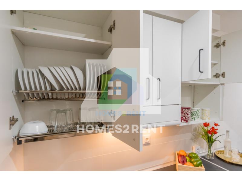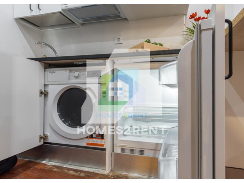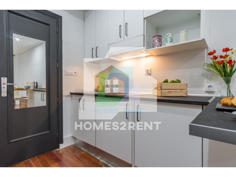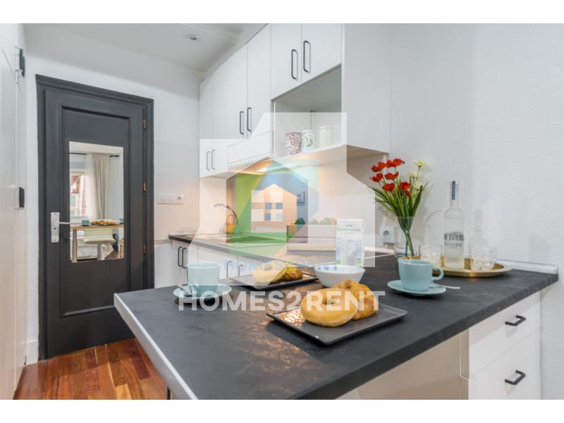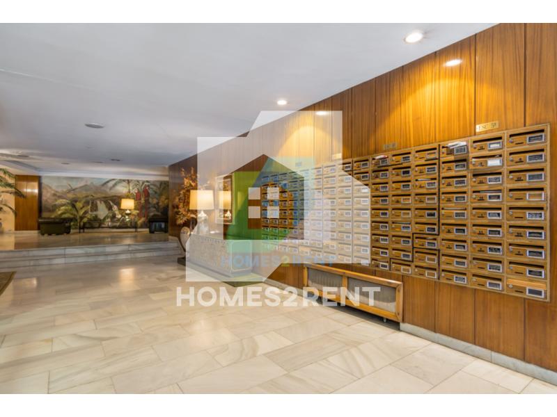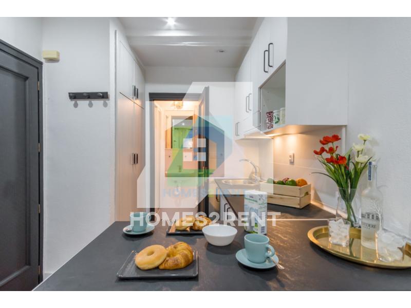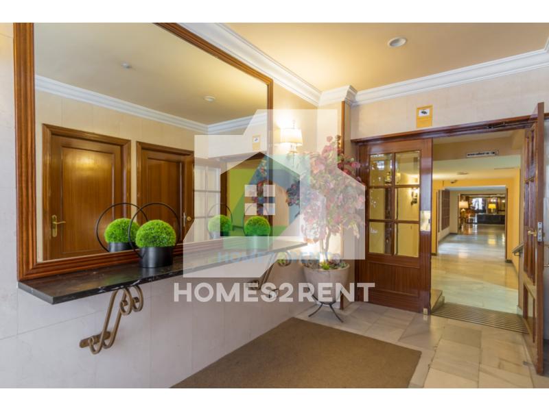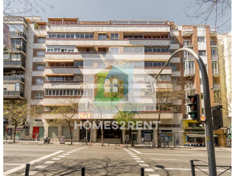 Homes2rent. se complace en presentar este luminoso y bonito estudio recien reformado y a estrenar, situado en la primera planta, de un edificio de 1974 en La zona Guindalera del barrio de Salamanca. La vivienda goza de unas vistas muy agradables junto al jardin del edificio.